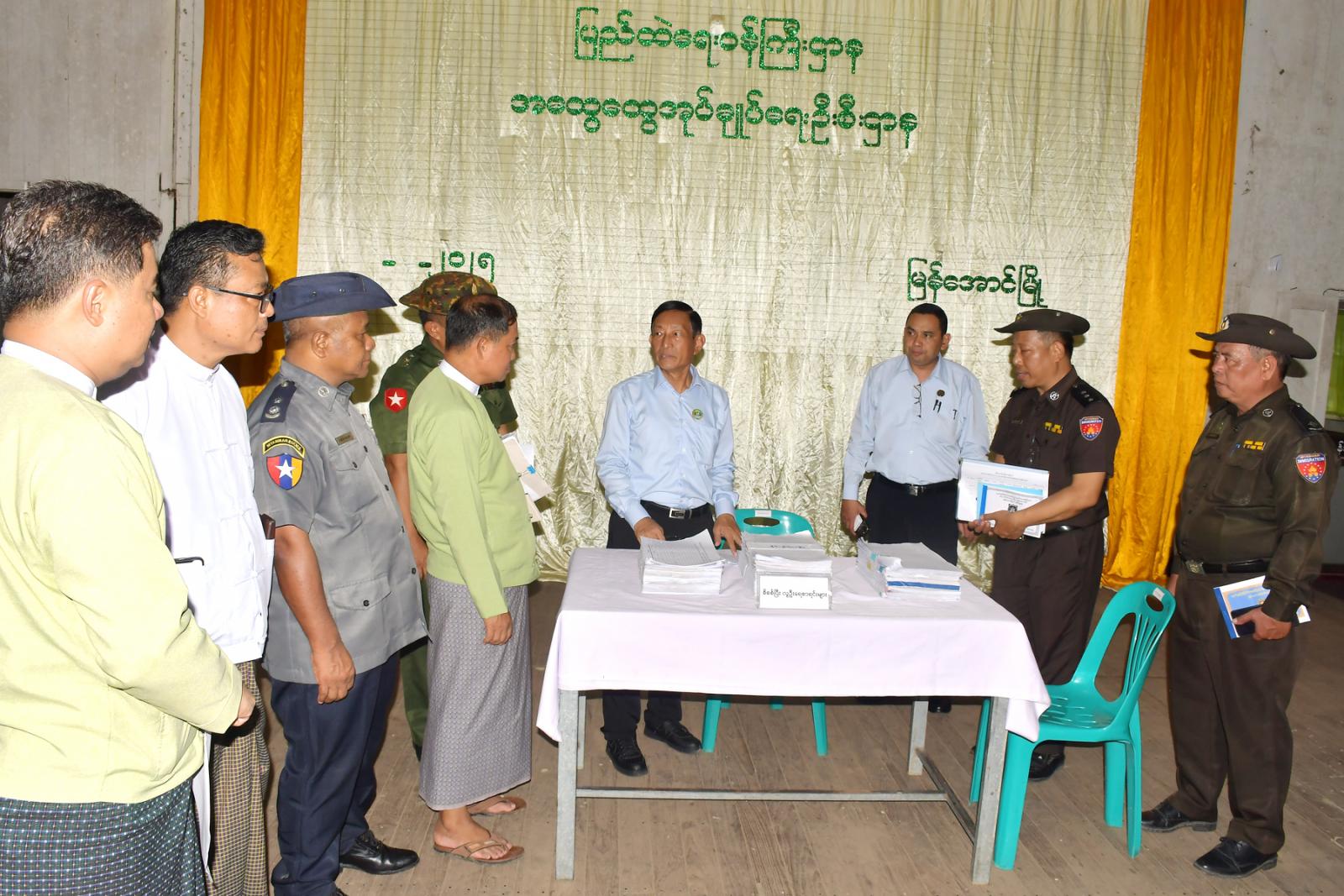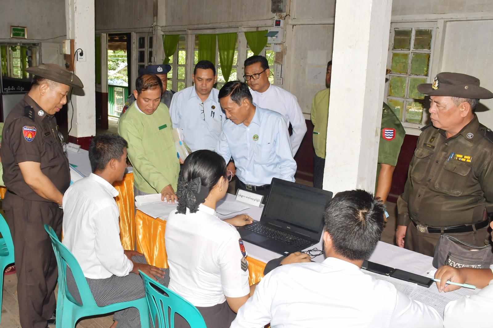 ဦးစွာ ဧရာဝတီတိုင်းဒေသကြီး လမ်းပန်းဆက်သွယ်ရေးဝန်ကြီး ဦးအောင်စန်းချစ်နှင့် တာဝန်ရှိသူများသည် မြန်အောင်ခရိုင်မြေပြင်ကွင်းဆင်းကောက်ယူရေးကြီးကြပ်မှုကော်မတီဥက္ကဋ္ဌ၊ မြန်အောင်ခရိုင် စီမံခန့်ခွဲရေးနှင့်အုပ်ချုပ်ရေးကော်မတီဥက္ကဋ္ဌ ဦးမျိုးလှိုင်၊ အဖွဲ့ဝင် ဒုတိယဗိုလ်မှူးကြီး ဇော်ဟိန်းနှင့် အဖွဲ့ဝင်များနှင့်အတူ မြန်အောင်မြို့နယ်အထွေထွေအုပ်ချုပ်ရေးဦးစီးဌာနခန်းမတွင် လူဝင်မှုကြီးကြပ်ရေးနှင့်ပြည်သူ့အင်အားဝန်ကြီးဌာန e-ID Server အတွင်းရှိ ၂၈-၁၂-၂၀၂၅ ရက်နေ့ရှိ ၁၈ နှစ်နှင့်အထက် လူဦးရေစာရင်းကို ရပ်ကွက်/ကျေးရွာအုပ်စုအလိုက် မြေပြင်တွင် တိုက်ဆိုင်စစ်ဆေးခြင်းလုပ်ငန်းများအားကြည့်ရှုစစ်ဆေးရာ မြို့နယ်မြေပြင်ကွင်းဆင်းကောက်ယူရေးကြီးကြပ်မှုကောမတီဥက္ကဋ္ဌ၊ မြို့နယ်စီမံခန့်ခွဲရေးနှင့်အုပ်ချုပ်ရေးကော်မတီဥက္ကဋ္ဌ ဦးနေမင်းထွန်းနှင့် အတွင်းရေးမှူး လူဝင်မှုကြီးကြပ်ရေးနှင့်ပြည်သူ့အင်အားဝန်ကြီးဌာန မြို့နယ်ဦးစီးမှူး ဦးတင်မောင်မြင့်တို့က လုပ်ငန်းဆောင်ရွက်ပြီးစီးမှုအခြေအနေများကို ရှင်းလင်းတင်ပြခဲ့ကြသည်။