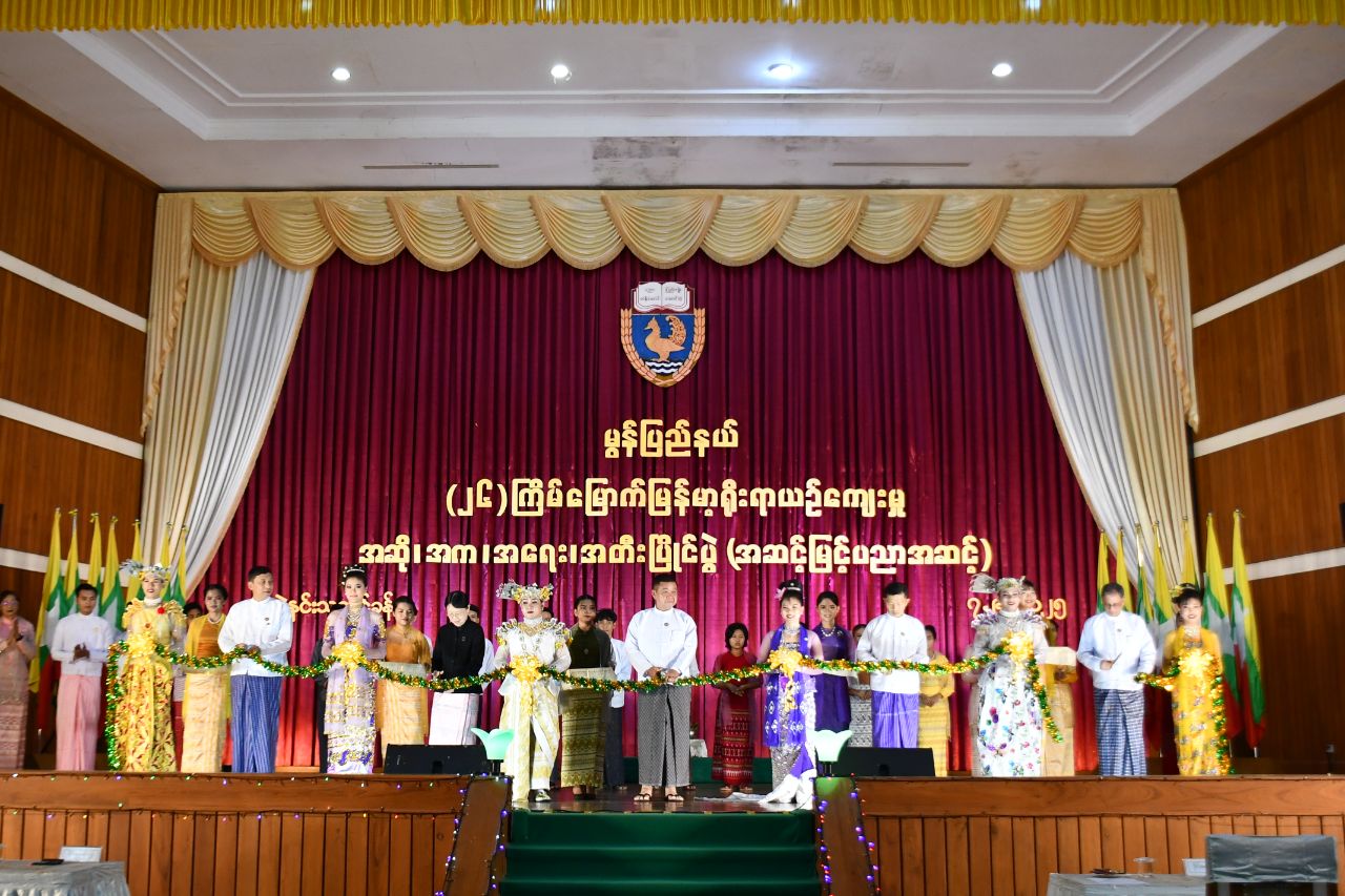 မွန်ပြည်နယ် (၂၆)ကြိမ်မြောက် မြန်မာ့ရိုးရာယဉ်ကျေးမှု အဆို၊ အက၊ အရေး၊ အတီးပြိုင်ပွဲ(အဆင့်မြင့်ပညာအဆင့်)ဖွင့်ပွဲအခမ်းအနားကို ယနေ့နံနက်ပိုင်းက မော်လမြိုင်တက္ကသိုလ် ဘွဲ့နှင်းသဘင်ခန်းမ၌ကျင်းပပြုလုပ်ရာ မွန်ပြည်နယ်ဝန်ကြီးချုပ် ဦးအောင်ကြည်သိန်း၊ ပြည်နယ်တရားလွှတ်တော်တရားသူကြီးချုပ်နှင့် ပြည်နယ်ဝန်ကြီးတို့က မွန်ပြည်နယ် (၂၆)ကြိမ်မြောက် မြန်မာ့ရိုးရာယဉ်ကျေးမှု အဆို၊ အက၊ အရေး၊ အတီးပြိုင်ပွဲ(အဆင့်မြင့်ပညာအဆင့်)ဖွင့်ပွဲ အခမ်းအနားကို ဖဲကြိုးဖြတ်ဖွင့်လှစ်ပေးခဲ့သည်။