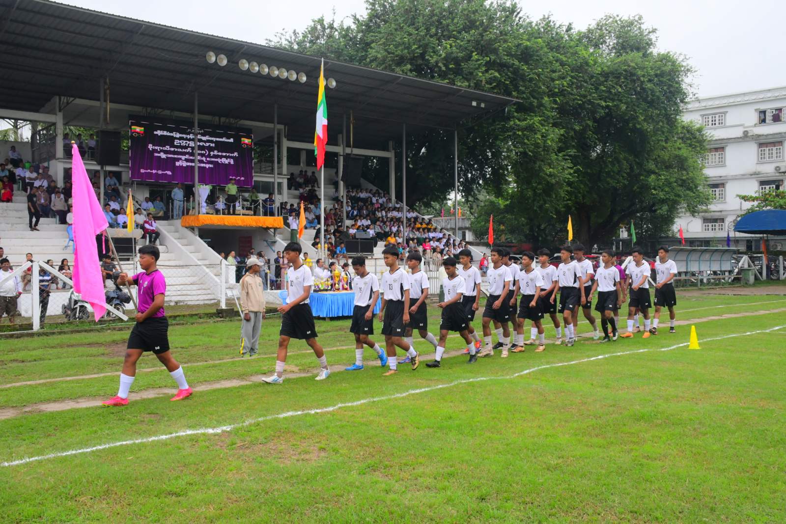 ရှေးဦးစွာ ပြိုင်ပွဲဝင်အားကစားသမားများနှင့် ဘင်ခရာမောင်မယ်တပ်ဖွဲ့များမှ ကွင်းအတွင်း နေရာယူကာ နိုင်ငံတော်အလံအား အလေးပြုခဲ့ကြပြီး ခရိုင်စီမံခန့်ခွဲရေးနှင့် အုပ်ချုပ်ရေးကော်မတီဥက္ကဋ္ဌ ဦးကောင်းစံလင်းက မြဝတီမြို့တွင် ထူးချွန်သောအားကစားသမားများ ပေါ်ပေါက်လာစေရန် တာဝန်ရှိသူများမှ ကဏ္ဍအလိုက်ပံ့ပိုးမှုဖြင့် ယခုလို ကျောင်းပေါင်းစုံ အသက် (၁၈) နှစ်အောက် အမျိုးသားဘောလုံးပြိုင်ပွဲ ကျင်းပရခြင်းဖြစ်ကြောင်း၊ ပြိုင်ပွဲဝင်အားကစားသမားများမှ အားကစားစိတ်ဓာတ်ဖြင့်ယှဥ်ပြိုင်ရန်လိုကြောင်း၊ ဘက်စုံထူးချွန်သော မျိုးဆက်သစ်လူငယ်များ ဖြစ်လာစေရန် မျှော်လင့်ကြောင်း အဖွင့်အမှာစကား ပြောကြားခဲ့ကာ အမျိုးသားကျောင်းပေါင်းစုံ ဘောလုံးပြိုင်ပွဲအား ဖွင့်လှစ်ပေးခဲ့သည်။