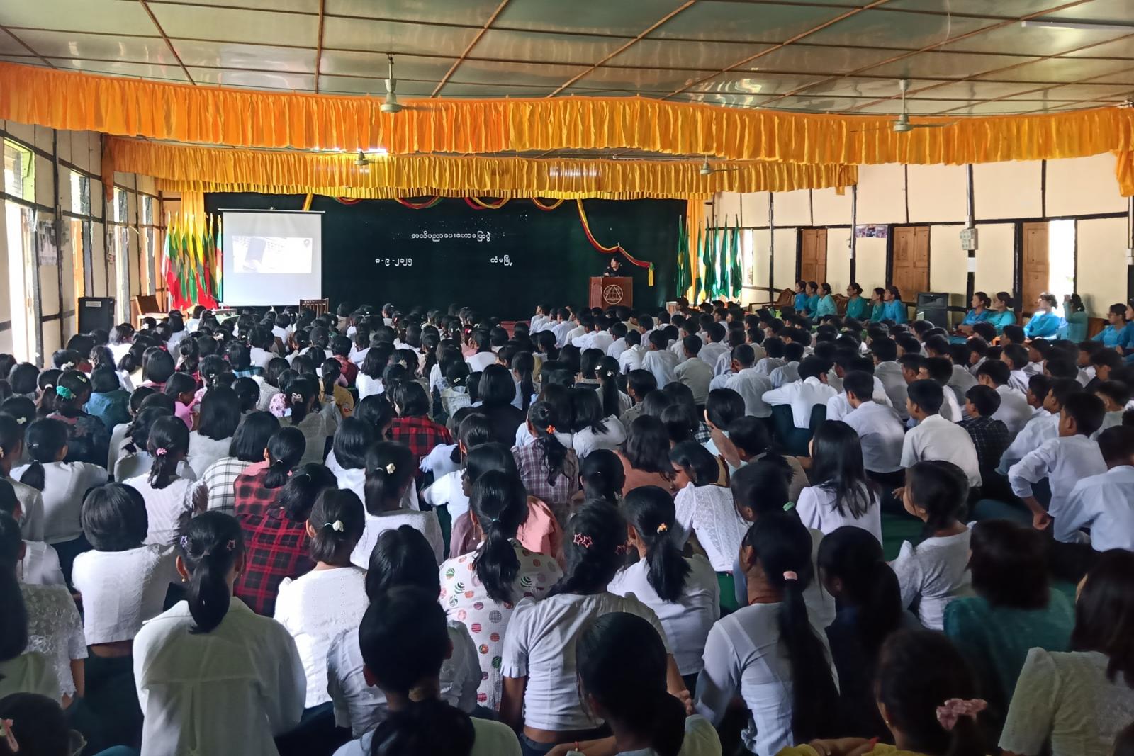 အသိပညာပေးဟောပြောပွဲတွင် မြို့နယ်အမျိုးသမီးရေးရာအဖွဲ့ အဖွဲ့ဝင် ဒေါ်သင်းနေခြည်အေးနှင့် ဒုတိယမြို့နယ် ဥပဒေအရာရှိ ဒေါ်မေသော်တာနိုင်တို့က ပြည်သူများ အင်တာနက်အွန်လိုင်းအသုံးပြု၍ လောင်းကစားမှု၊ လိမ်လည်မှုနှင့် ဆိုက်ဘာလုံခြုံရေးဆိုင်ရာများ သတိပြုဆင်ခြင်နိုင်ရန် Facebook ၊ Viber ၊ Telegram စသည်တို့ကိုအသုံးပြု၍ အွန်လိုင်းငွေကြေးလိမ်လည်မှု လုပ်ငန်းများသို့ လိမ်လည်စည်းရုံး ခေါ်ဆောင်သည့် နည်းလမ်းများအကြောင်းတို့အား အသိပညာပေး ဟောပြောခဲ့ပြီး လန်ချန်း-မဲခေါင် တရားဥပဒေစိုးမိုးရေးနှင့် လုံခြုံရေးပူးပေါင်းဆောင်ရွက်မှု ဗဟိုဌာနမှ ပေးပို့ထားသည့် ဆက်သွယ်ရေးလိမ်လည်မှု တိုက်ဖျက်ရေးဆိုင်ရာ အသိပညာပေး Video Clip (၂) ခုအား projector ဖြင့် ကျောင်းသား၊ ကျောင်းသူများအား ပြသခဲ့ကြောင်း သိရသည်။