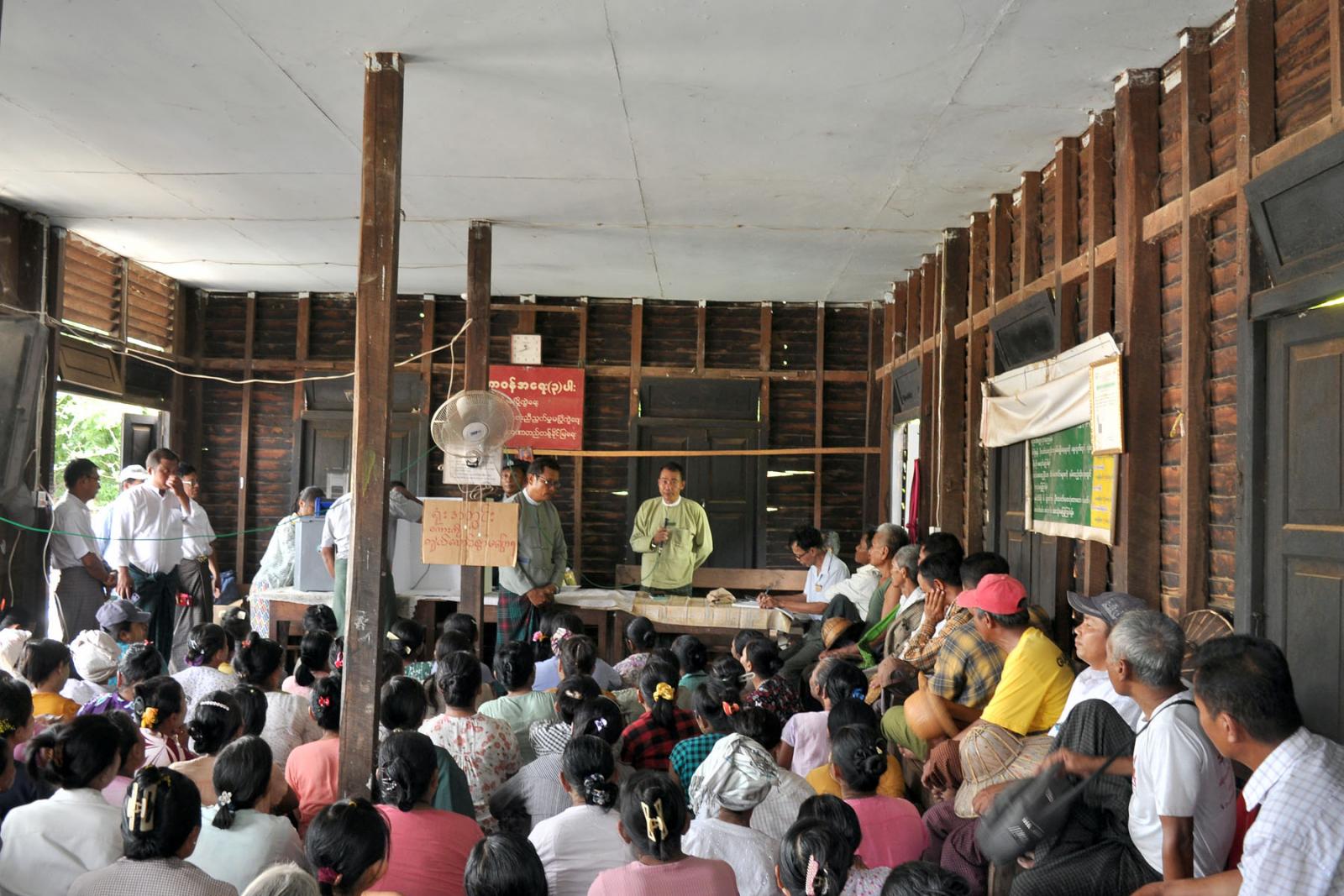 မြန်မာအီလက်ထရောနစ်မဲပေးစက်နှင့်ပတ်သက်၍ အသိပညာပေးခြင်းလုပ်ငန်းများဆောင်ရွက်ရာတွင် မြို့နယ်စီမံခန့်ခွဲရေးနှင့်အုပ်ချုပ်ရေးကော်မတီဥက္ကဋ္ဌ ဦးလှရွှေက အဖွင့်အမှာစကားပြောကြားခဲ့ပြီး မြို့နယ်ရွေးကောက်ပွဲအရာရှိ ဦးအောင်ကျော်ဝင်းက မဲဆန္ဒရှင်ပြည်သူများအား (MEVM)မဲပေးစက်ဖြင့် လက်တွေ့စမ်းသပ်မဲပေးခြင်းလုပ်ငန်းများကို ပြည်သူများ သိရှိနားလည်စေရန် ရှင်းလင်းပြောကြားပေးခဲ့သည်။