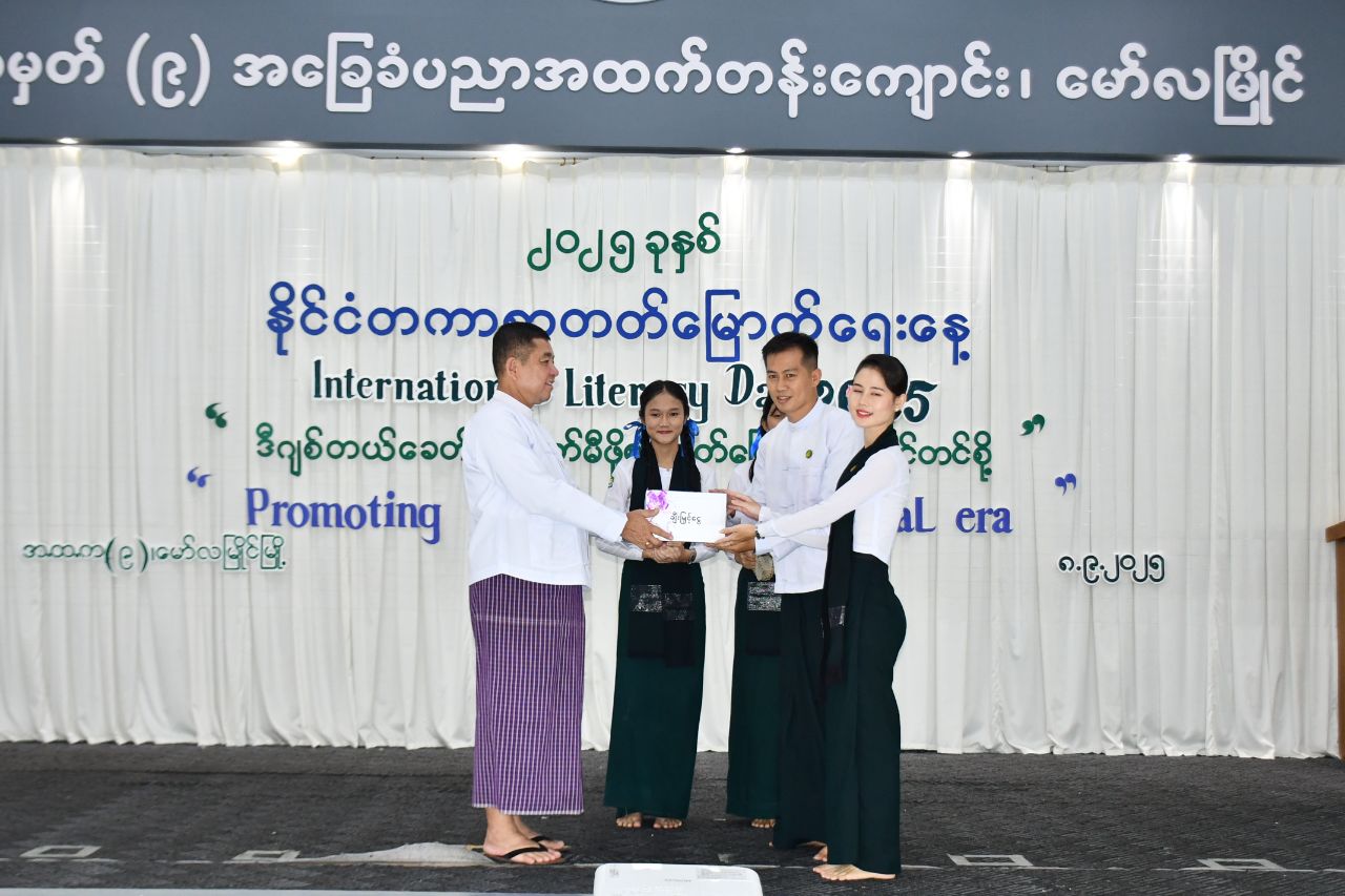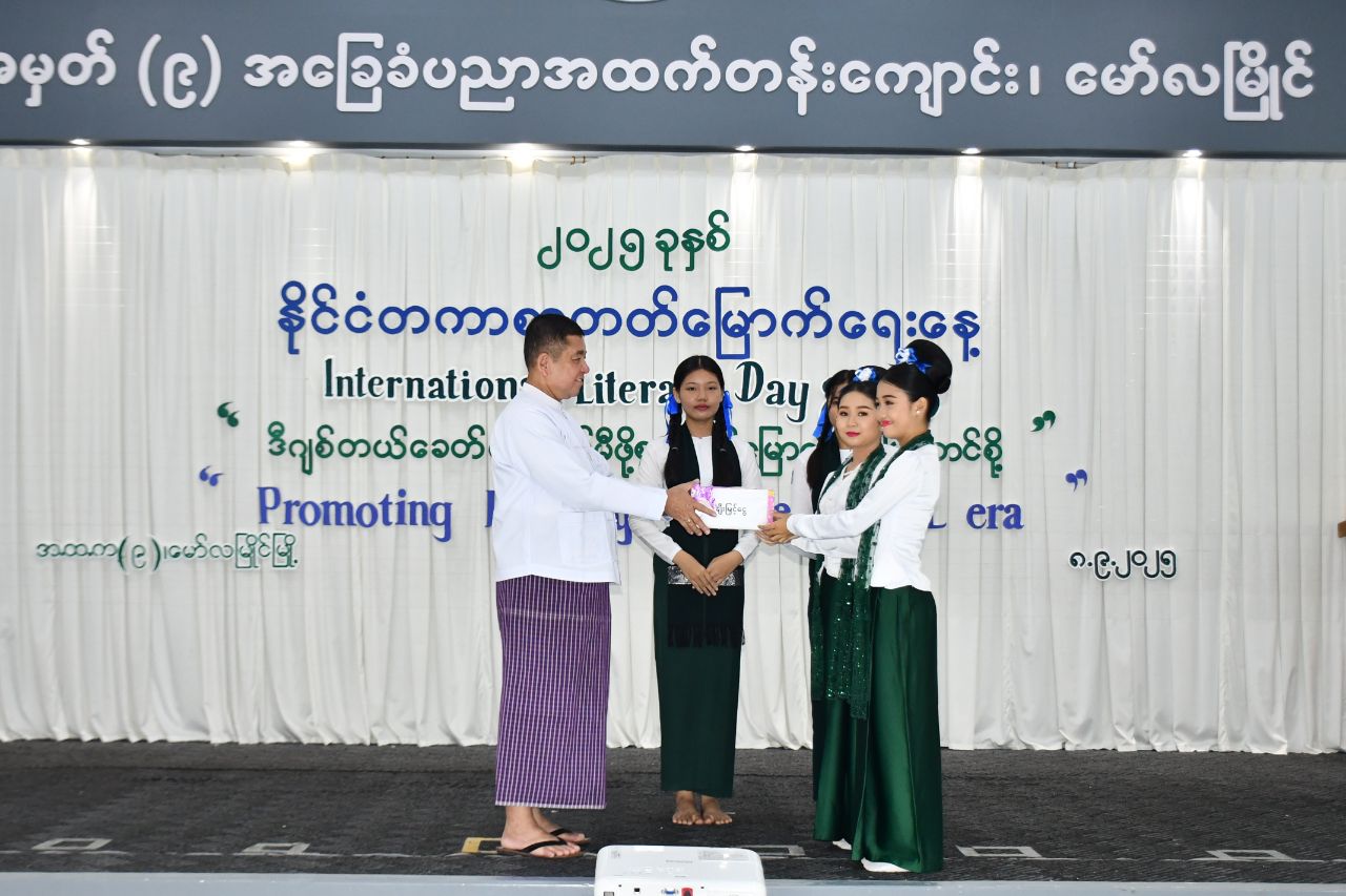 ၂၀၂၅ ခုနှစ် နိုင်ငံတကာစာတတ်မြောက်ရေးနေ့အထိမ်းအမှတ်အခမ်းအနားကို ယမန်နေ့ နံနက်ပိုင်းက မော်လမြိုင်မြို့ အမှတ်(၉)အခြေခံပညာအထက် တန်းကျောင်း ဦးသာညှင်းဓမ္မာရုံ၌ ကျင်းပပြုလုပ်ရာ မွန်ပြည်နယ်ဝန်ကြီးချုပ်ဦးအောင်ကြည်သိန်း၊ ပြည်နယ်တရားလွှတ်တော်တရားသူကြီးချုပ်၊ ပြည်နယ်အစိုးရ အဖွဲ့ဝင်ဝန်ကြီးများ၊ ပြည်နယ်အဆင့်ဌာနဆိုင်ရာများ၊ ပညာရေးဌာနမှတာဝန်ရှိသူများ၊ ဆရာ၊ ဆရာမများ၊ ကျောင်းသား၊ ကျောင်းသူများ တက်ရောက်ခဲ့သည်။