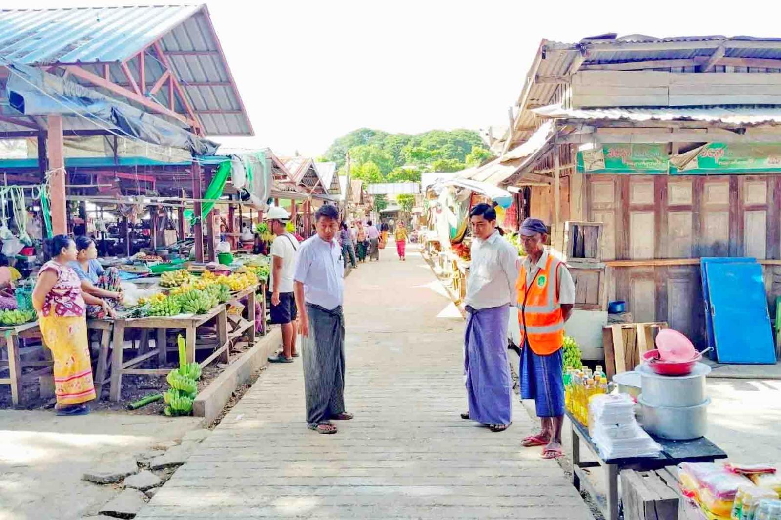 ထို့နောက် မြို့နယ်စည်ပင်သာယာရေးအဖွဲ့ အမှုဆောင်အရာရှိနှင့် ဝန်ထမ်းများ ပူးပေါင်းအဖွဲ့က မြို့မဈေးကြီးအတွင်းနှင့် ဈေးအပြင်ဘက်ခြမ်း ချယ်ရီလမ်းနှင့် သန့်စင်လမ်းဘေးရှိ ဈေးဆိုင်ခန်းများအား သန့်ရှင်းသပ်ရပ်မှု ရှိ/မရှိ၊ မီးဘေးအန္တရာယ်လုံခြုံစိတ်ချရမှု ရှိ/မရှိ၊ အရေးပေါ်မီးသတ်ယာဉ်များ ဝင်ထွက်လာရန် အဆင်ပြေမှု ရှိ/မရှိနှင့် ဈေးဆိုင်ခန်းများ နေရာကျူးကျော် ရောင်းချခြင်း ရှိ/မရှိ တို့ကို လိုက်လံကြည့်ရှုစစ်ဆေးပြီး နေရာကျူးကျော်၍ ခင်းကျင်းရောင်းချလျက်ရှိသော ယာယီအမိုးအကာများ ဈေးခုံများနှင့် ပစ္စည်းများကို ဖယ်ရှားရှင်းလင်းမှုများ ကြပ်မတ်ဆောင်ရွက်ခဲ့ကြောင်း သိရသည်။