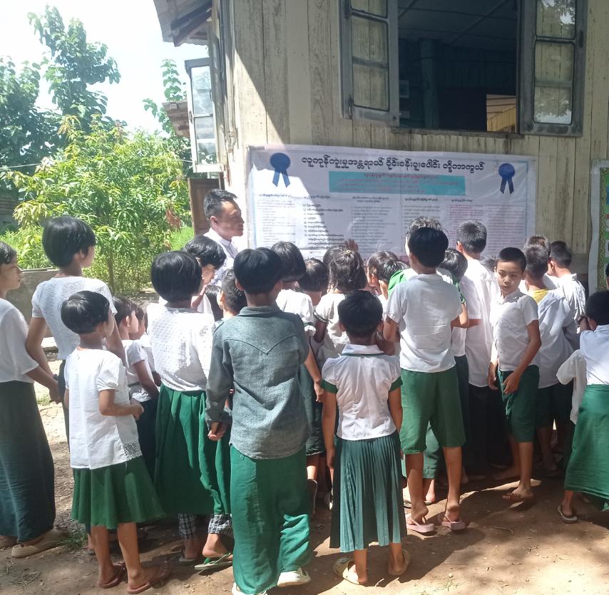 ထို့နောက် မြို့နယ်ပြန်ကြားရေးနှင့်ပြည်သူ့ဆက်ဆံရေးဦးစီးဌာနရုံးမှ ကလေးကြိုက်ရုပ်ပြများ၊ ပုံပြင်စာအုပ်များ၊ တိုင်းရင်းသားရိုးရာပုံပြင်များ၊ တေဇရုပ်ပြစာအုပ်များဖြင့် ကလေးစာဖတ်ဝိုင်း ဆောင်ရွက်ကာ ပြသထားရှိသော လူကုန်ကူးမှုအန္တရာယ်တားဆီးကာကွယ်ရေး မူးယစ်ဆေးဝါးအန္တရာယ်တားဆီး ကာကွယ်ရေး၊ သဘာဝပတ်ဝန်းကျင်ထိန်းသိမ်းရေးနှင့် ကလေးအလုပ်သမားပပျောက်ရေးဆိုင်ရာ အသိပညာပေး နံရံကပ်စာစောင်များကို ပြသဆောင်ရွက်ခဲ့ရာ ဆရာ၊ ဆရာမများနှင့် ကျောင်းသား ကျောင်းသူများက စိတ်ပါဝင်စားစွာ လေ့လာကြည့်ရှုခဲ့ကြကြောင်း သိရသည်။