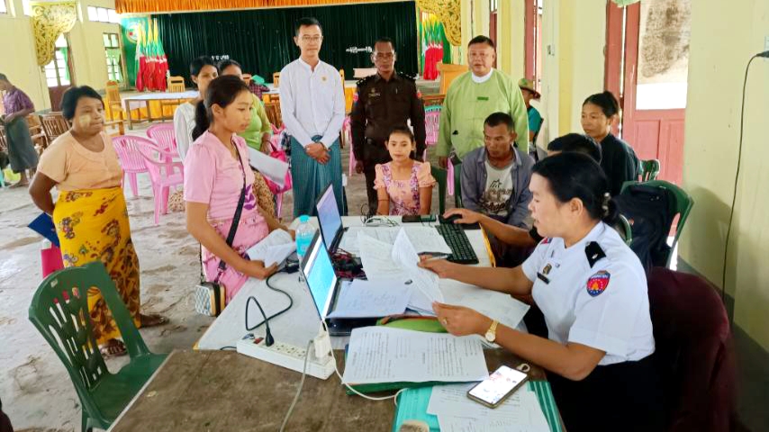 အဆိုပါ ဆောင်ရွက်ရာတွင် မြို့နယ်အုပ်ချုပ်ရေးမှူး ဦးမြင့်အောင်နှင့် တာဝန်ရှိသူများက ဒါးကကျေးရွာအုပ်စုအတွင်းရှိ မှတ်ပုံတင်၊ အိမ်ထောင်စုစာရင်းမရှိသူများအား မြို့နယ်လူဝင်မှုကြီးကြပ်ရေးနှင့် ပြည်သူ့အင်အားဦးစီးဌာန၊ မြို့နယ်စီမံကိန်းဦးစီးဌာန၊ မြို့နယ်ရဲတပ်ဖွဲ့နှင့် မြို့နယ်ပြည်သူ့ကျန်းမာရေးဦးစီးဌာနတို့မှ တာဝန်ရှိသူများ၊ ဒါးကကျေးရွာအုပ်ချုပ်ရေးမှူး စုစုပေါင်းကော်မတီ(၅)ဦးဖြင့် မှတ်ပုံတင်၊ အိမ်ထောင်စုစာရင်း ထုတ်ပေးနိုင်ရေး စိစစ်ဆောင်ရွက်မှု အခြေအနေများအားကြည့်ရှုခဲ့သည်။