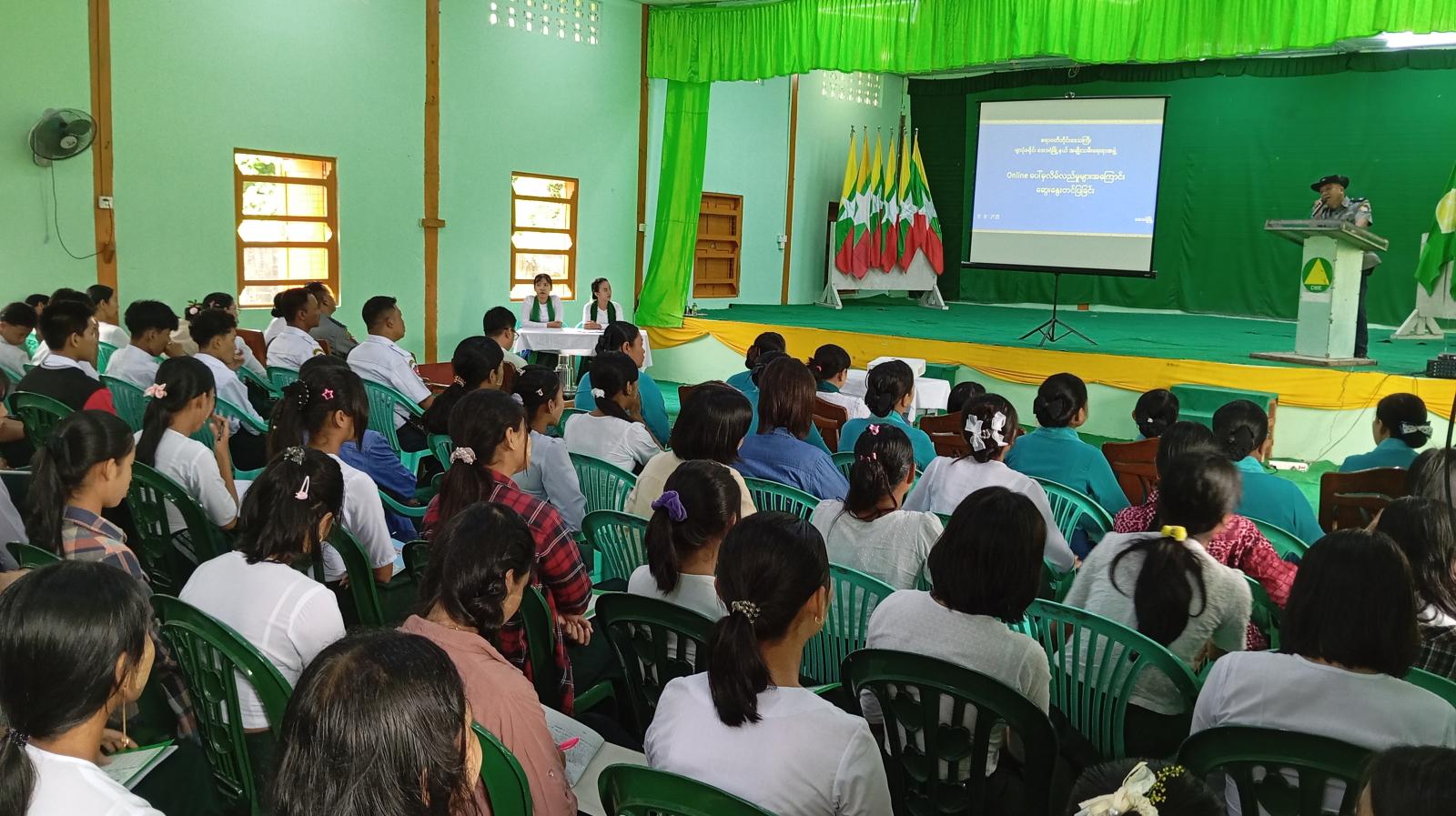 အခမ်းအနားတွင် မြို့နယ်စီမံခန့်ခွဲရေးနှင့် အုပ်ချုပ်ရေးကော်မတီဥက္ကဋ္ဌ ဦးမြသိန်းမောင်က အဖွင့်အမှာစကားပြောကြားခဲ့ပြီး အတွင်းရေးမှူးရဲမှူးပိုထွန်းက ယနေ့ခေတ် နည်းပညာများလျှင်မြန်စွာ ဖွံ့ဖြိုးတိုးတက်လာသည်နှင့်အညီ အွန်လိုင်းမှတစ်ဆင့် ငွေကြေးလိမ်လည်မှုများ ဖြစ်ပွားလျက်ရှိသဖြင့် ကြိုတင်သတိထားလိုက်နာရမည့်အချက်များ ဆွေးနွေးဟောပြောခြင်း၊ မြို့နယ်ပြန်ကြားရေးနှင့် ပြည်သူ့ဆက်ဆံရေးဦးစီးဌာန၊ ဦးစီးအရာရှိ ဒေါ်မြင့်မြင့်ခိုင်က ကျောင်သား၊ ကျောင်းသူများ ဆိုက်ဘာလုံခြုံရေးဆိုင်ရာ သိမှတ်ဖွယ်ရာများနှင့် မူးယစ်ဆေးဝါး အန္တရာယ်များအကြောင်း အသိပညာပေးဟောပြောခြင်း၊ မြို့နယ်အမျိုးသမီးရေးရာအဖွဲ့ဥက္ကဋ္ဌ ဒေါ်သက်သက်စိုးက အင်တာနက်အွန်လိုင်းအသုံးပြု၍ လူပုဂ္ဂိုလ် သို့မဟုတ် အဖွဲ့အစည်းများထံမှငွေကြေးနှင့် အချက်အလက်များ လိမ်လည်လှည့်ဖြားရယူခြင်းများ၊ အင်တာနက်အွန်လိုင်းအသုံးပြု၍ လောင်းကစားမှု၊ လိမ်လည်မှုများအား ကျောင်းသား၊ ကျောင်းသူများ သတိပြုဆင်ခြင်နိုင်ရေး အသိပညာပေး ဟောပြောခြင်း၊ မြို့မရဲစခန်းမှူး ဒုရဲမှူးသိန်းလှိုင်က အိမ်နီးချင်းနိုင်ငံများ၌ ဆောင်ရွက်လျက်ရှိသည့် ဆက်သွယ်ရေး လိမ်လည်မှု တိုက်ဖျက်ရေးဆိုင်ရာ (Video Click)အား ပြသရှင်းလင်းခြင်းနှင့် အွန်လိုင်းလိမ်လည်မှုများကြောင့် ကျခံရမည့် ပြစ်ဒဏ်များအား အသိပညာပေး ဟောပြောခြင်း၊ မြို့နယ်ယာဥ်ထိန်းတပ်ဖွဲ့ ဒုတပ်ကြပ် ကိုကိုဇော် ယာဥ်စည်းကမ်း၊ လမ်းစည်းကမ်းဆိုင်ရာများအား ဟောပြောခဲ့ကြောင်း သိရသည်။