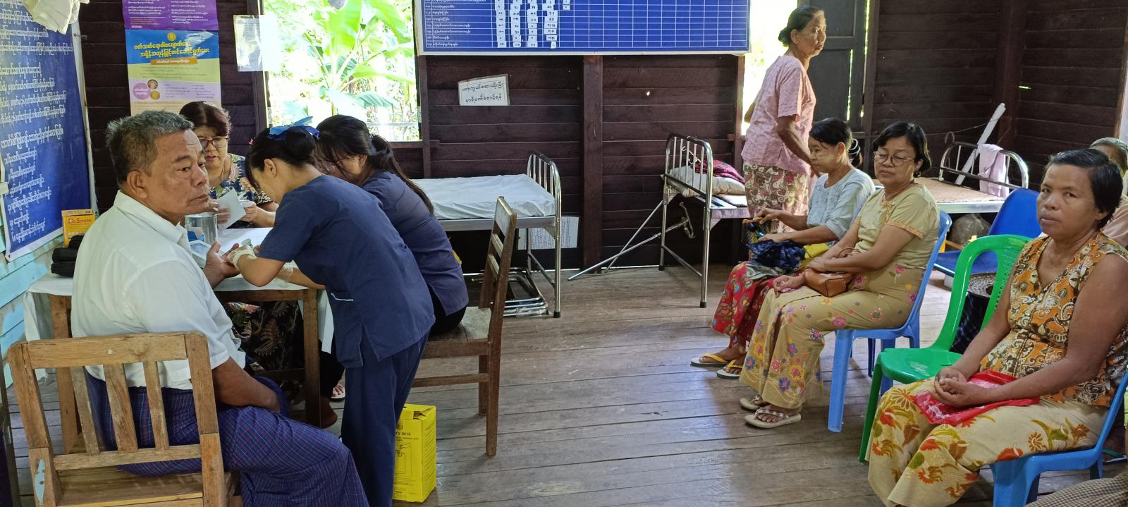 နိုင်ငံ့ဝန်ထမ်းအငြိမ်းစားများအား ကျန်းမာရေးစစ်ဆေးခြင်းနှင့် ဆေးကုသပေးရာတွင် မြို့နယ်ပြည်သူ့ကျန်းမာရေးဦးစီးဌာနမှ ကျန်းမာရေးဝန်ထမ်း ဆရာ၊ ဆရာမများက အငြိမ်းစားဝန်ထမ်များအား စာရင်းပေးသွင်းပြီး သွေးပေါင်ချိန်တိုင်းတာခြင်း၊ ဆီးချို၊ သွေးချိုစစ်ဆေးပေးခြင်း၊ နှလုံးစစ်ဆေးပေးခြင်းနှင့် လိုအပ်သည့်ဆေးဝါးများအား အခမဲ့ဆောင်ရွက်ပေးခဲ့သည်။