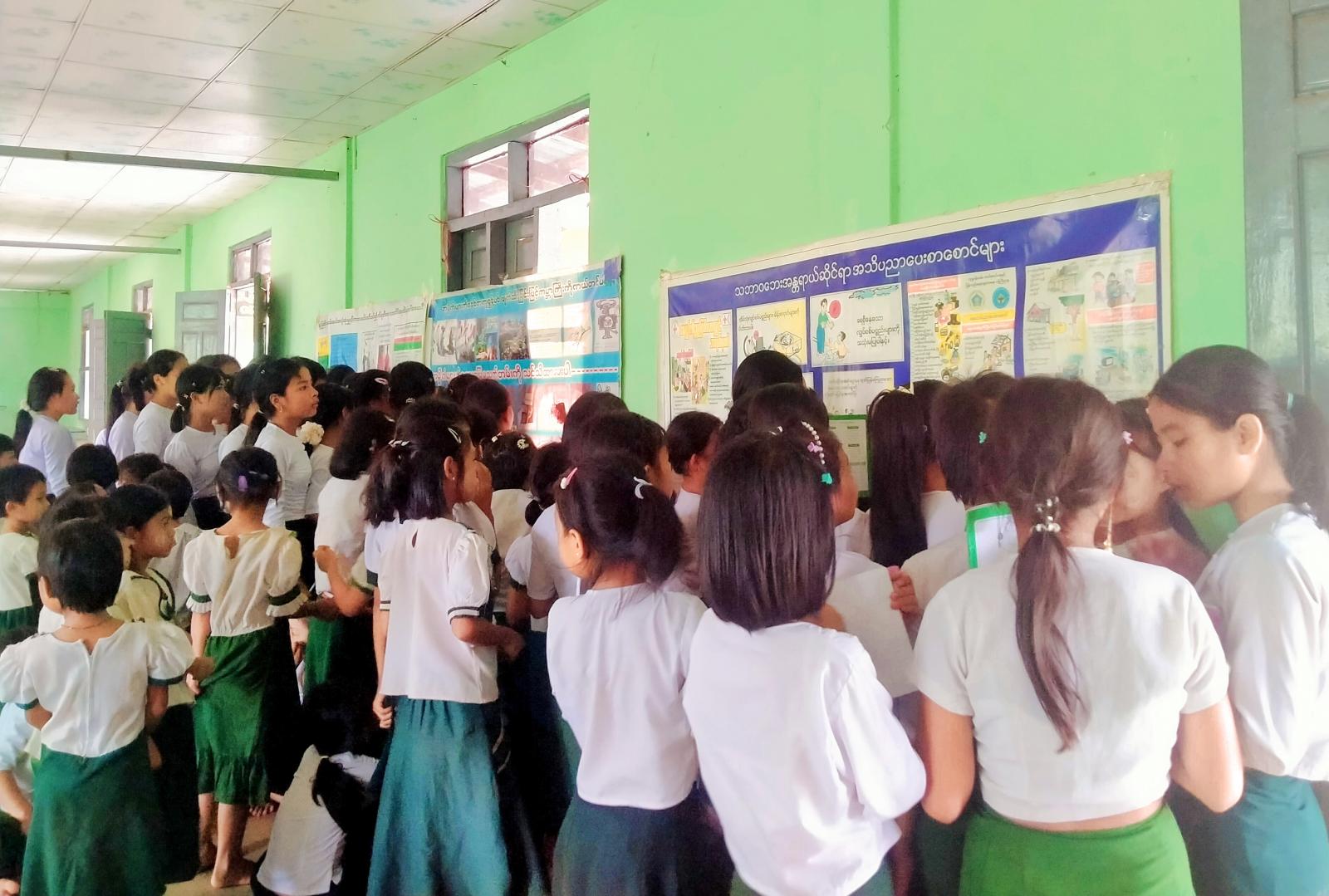 ထိုနောက် ပြန်ကြားရေးနှင့်ပြည်သူ့ဆက်ဆံရေးဦးစီးဌာနမှ ဦးဆောင်ပြသသည့် သဘာဝဘေးအန္တရာယ်ကြိုတင်ကာကွယ်ရေး၊ စွန့်ပစ်အမှိုက်များစနစ်တကျစွန့်ပစ်ရေးနှင့် မူးယစ်ဆေးဝါးအန္တရာယ်အသိပညာပေး နံရံကပ်စာစောင်များအား ကျောင်းသား လူငယ်များတို့က စိတ်ပါဝင်စားစွာ လေ့လာကြည့်ရှုခဲ့ကြောင်း သိရသည်။