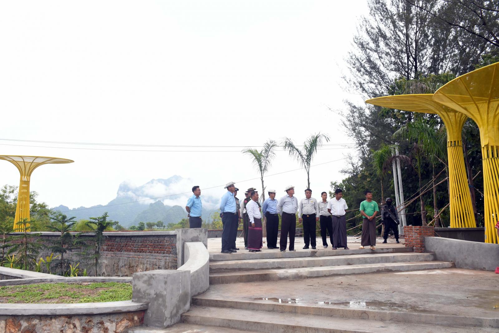ဆက်လက်၍ ပြည်နယ်ဝန်ကြီးချုပ်နှင့်အဖွဲ့သည် ဘားအံမြို့အဝင် သံလွင်တံတားထိပ် (ဘားအံဘက်ခြမ်း)တွင် ပြည်နယ်စည်ပင်သာယာ ရေးအဖွဲ့မှ မြေယာရှုခင်းအလှပြုလုပ်ခြင်းလုပ်ငန်း (၈၀၀၀စတုရန်းပေ)အား ကြည့်ရှုစစ်ဆေးရာ ပြည်နယ်အင်ဂျင်နီယာမှူးကြီးဦးစိုးလွင်က လုပ်ငန်း တစ်ခုလုံး၏ ၈၀ ရာခိုင်နှုန်းဆောင်ရွက်ပြီးစီးမှုနှင့် ထည့်သွင်းဆောင်ရွက်မည့်လုပ်ငန်းများအား ရှင်းလင်းတင်ပြပြီး ပြည်နယ်ဝန်ကြီးချုပ်က ဘားအံမြို့အဝင်နှင့်ခရီးသွားအများ ပြည်သူဖြတ်သန်း သွားလာသည့်လမ်းပေါ်တွင်တည်ရှိသည့်အတွက် လုပ်ငန်းများအားစေတနာရှေ့ထား၍ ကြိုးပမ်းဆောင်ရွက်ရန်နှင့် နိုဝင်ဘာလတွင်ကျရောက်မည့် နှစ်(၇၀)ပြည့် ကရင်ပြည်နယ်နေ့အမီ ဖွင့်လှစ်နိုင်ရေး ကြိုးပမ်းဆောင်ရွက်ရန် မှာကြားသည်။