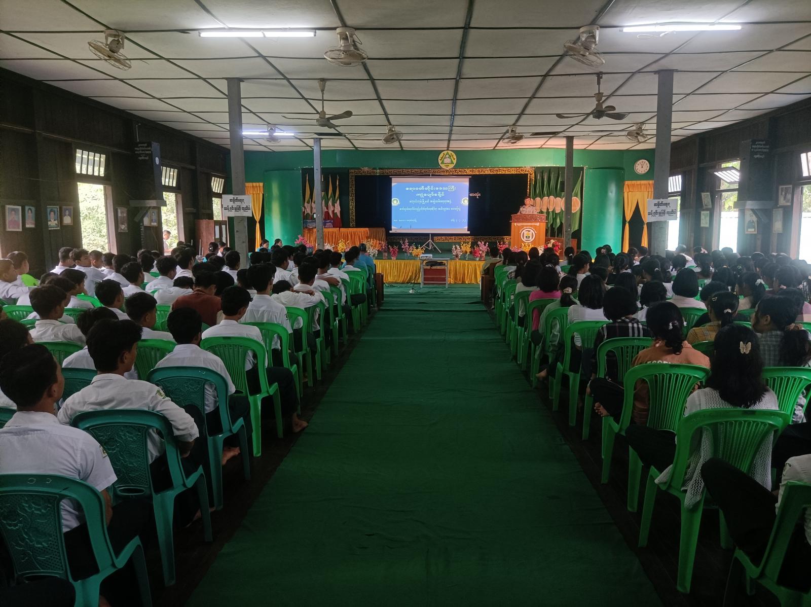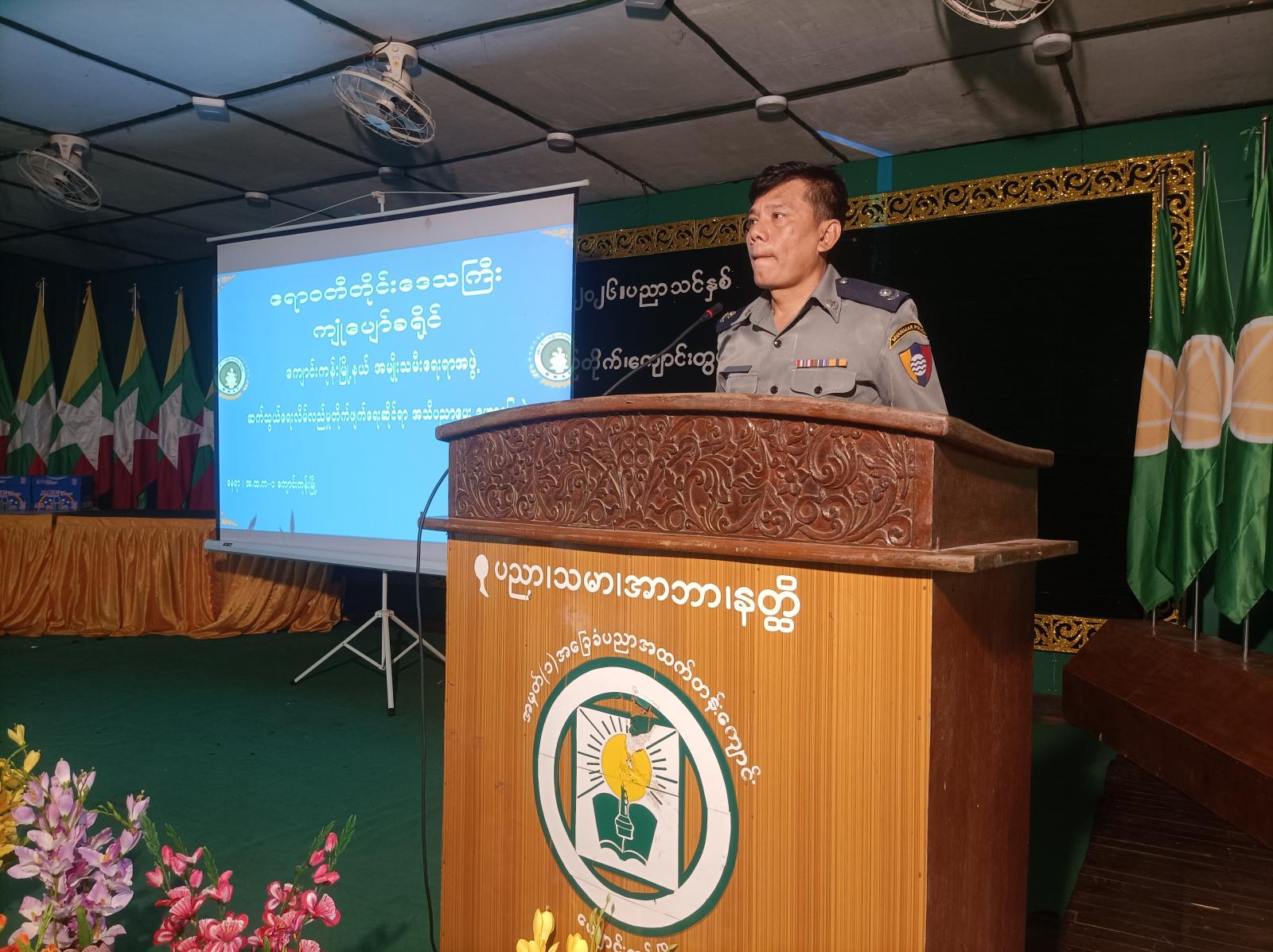 အခမ်းအနားတွင် မြို့နယ်အမျိုးသမီးရေးရာအဖွဲ့ဥက္ကဋ္ဌ ဒေါ်မြစန္ဒာညိုက ဆက်သွယ်ရေးဥပဒေဆိုင်ရာအမည်နှင့် အဓိပ္ပါယ်ဖော်ပြချက်များ၊ ဆက်သွယ်ရေးနည်းပညာများကို အသုံးပြု၍ လိမ်လည်မှုဖြစ်စဉ်များ၊ အွန်လိုင်းလိမ်လည်မှု ပြစ်မှု/ပြစ်ဒဏ်များအကြောင်းတို့ကို ပြောကြားခဲ့ပြီး၊ လန်ချန်-မဲခေါင်တရားဥ ပဒေစိုးမိုးရေးနှင့် လုံခြုံရေးပူးပေါင်းဆောင်ရွက်မှုဗဟိုဌာန (LMLECC) မှ ပေးပို့လာသည့် ဆက်သွယ်ရေးလိမ်လည်မှုတိုက်ဖျက်ရေးဆိုင် ရာအသိပညာပေး Video Clip ကို ကျောင်းသား/သူများအား ပရိုဂျက်တာဖြင့် ပြသပေးခဲ့သည်။