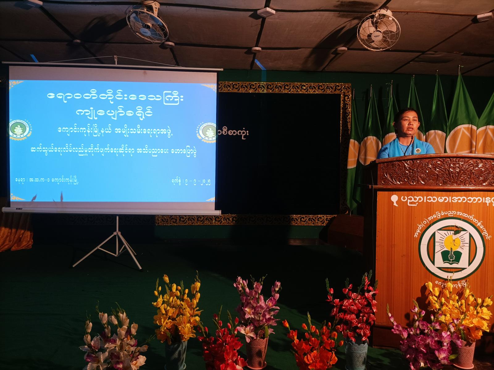 ဧရာဝတီတိုင်းဒေသကြီး၊ ကျုံပျော်ခရိုင်၊ ကျောင်းကုန်းမြို့နယ် အမျိုးသမီးရေးရာအဖွဲ့မှကြီးမှူး၍ အမှတ် (၁) အခြေခံပညာအထက်တန်းကျောင်း၊ ပညာ့ဗိမာန်ခန်းမ၌ ဆက်သွယ်ရေးလိမ် လည်မှုတိုက်ဖျက်ရေးအသိပညာပေး ဟောပြောခြင်းနှင့် အသိပညာပေးဗီဒီယိုပြသခြင်းကို ယမန်နေ့က ကျင်းပပြုလုပ်ခဲ့သည်။
