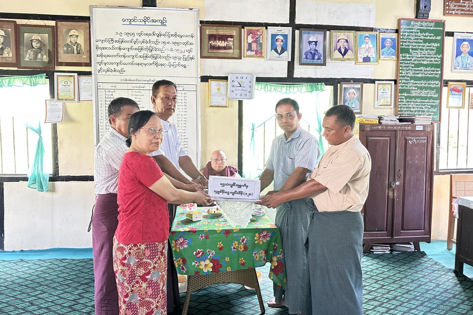 မကွေးတိုင်းဒေသကြီး၊ သရက်ခရိုင်၊ ကံမမြို့ အခြေခံပညာအထက်တန်းကျောင်း(ကံမ) ကျောင်းအဝင်လမ်း ကွန်ကရစ်လမ်းသစ်ခင်းခြင်းအား ဆောင်ရွက်လျက်ရှိရာ ယမန်နေ့ နံနက် (၁၁)နာရီက ကံမမြို့နယ်အသင်း(ရန်ကုန်)မှ နာယကဆရာတော် ဦးဂဏုတ္တမနှင့် အသင်းဝင်တစ်ဦးတို့က ရွှေသံလွင်ကုမ္ပဏီမှ လှူဒါန်းသော ငွေကျပ် သိန်း(၁၂၀)အား ကျောင်းအကျိုးဆောင်အဖွဲ့ထံ ပေးအပ်လှူဒါန်းခဲ့ကြောင်း သိရသည်။