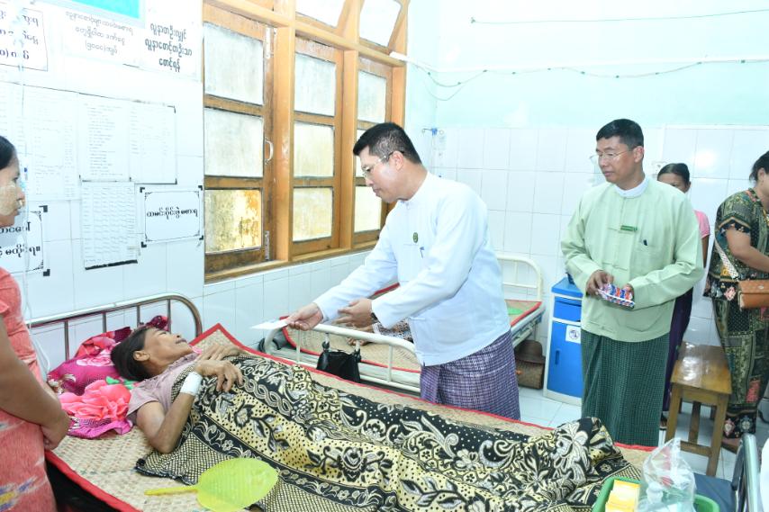 ဆက်လက်၍ တိုင်းဒေသကြီးဝန်ကြီးချုပ်နှင့်အဖွဲ့သည် ရေကြည်မြို့နယ်ပြည်သူ့ဆေးရုံကြီးသို့သွားရောက်၍ ဆေးကုသဆောင်အသီးသီးတွင် ဆေးတက်ရောက်ကုသနေသည့် ပြည်သူများအား တွေ့ဆုံအားပေးစကားများပြောကြားခဲ့ပြီး ထောက်ပံ့ငွေများပေးအပ်ခဲ့ကာ ပြည်သူများအားကျန်းမာရေးစောင့်ရှောက်မှုအပြည့်အဝပေးနိုင်ရေး၊ ဆေးရုံပတ်ဝန်းကျင်သန့်ရှင်းမှုရှိစေရေး မှာကြားခဲ့သည်။