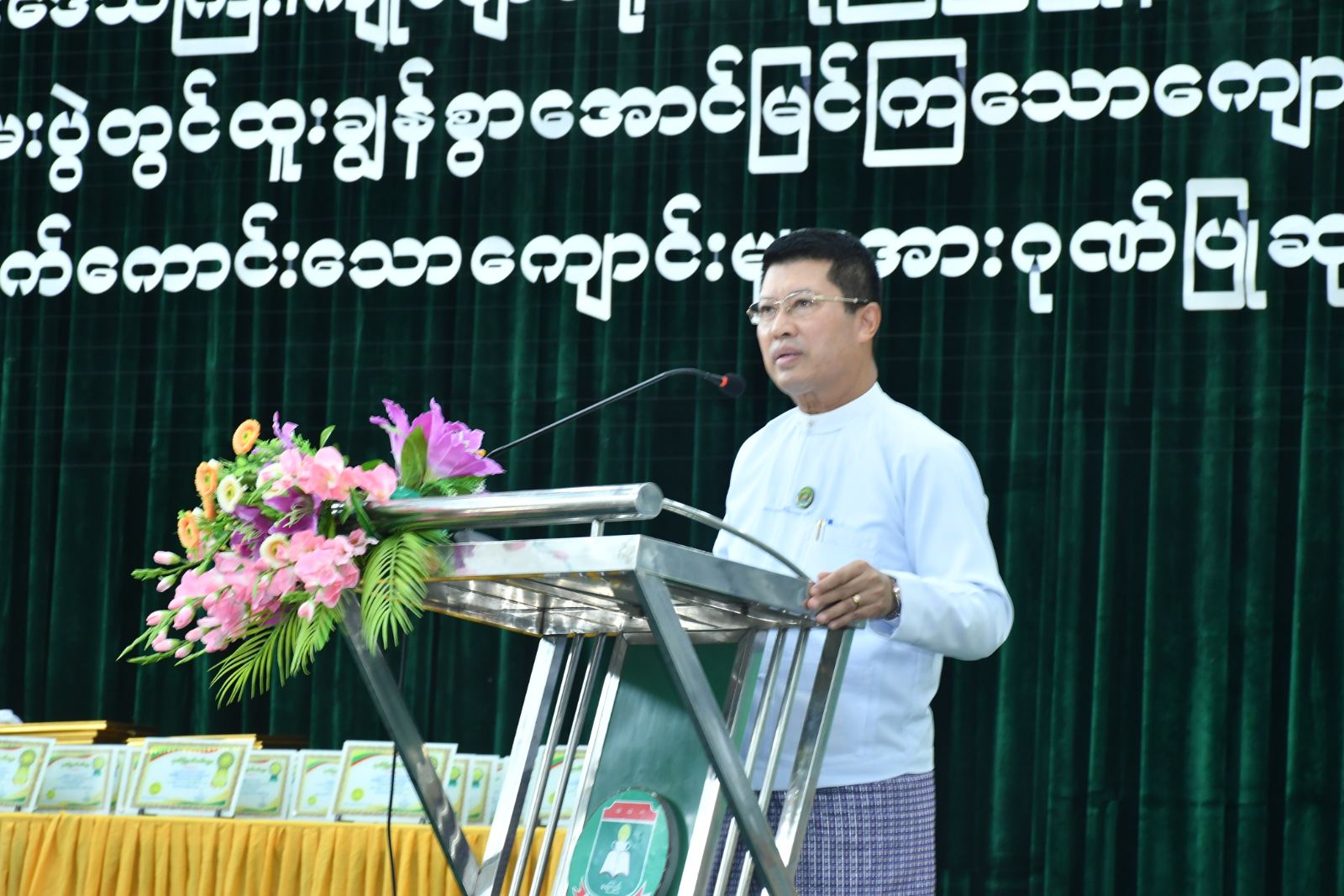 ဦးစွာ အခမ်းအနားကို အ.ထ.က-၁ ရေကြည်မှ ကျောင်းသား၊ကျောင်းသူများက "ဘက်စုံပညာကိုရည် တို့လှမ်းချီ”သီချင်းဖြင့် အခမ်းအနားကို သီဆိုဂုဏ်ပြုဖွင့်လှစ်ခဲ့ပြီးနောက် တိုင်းဒေသကြီးဝန်ကြီးချုပ်က“ ယနေ့ပြုလုပ်သည့် အခမ်းအနားသည် ၂၀၂၄- ၂၀၂၅ ပညာသင်နှစ် လူရည်ချွန်များနှင့် တက္ကသိုလ်ဝင်စာမေးပွဲတွင် ထူးချွန်စွာ အောင်မြင်ကြသော ကျောင်းသား၊ကျောင်သူများ၊ ဂုဏ်ထူးရရှိအောင် သင်ကြားပေးသော ဆရာ၊ဆရာမများ၊ အောင်ချက်အကောင်းဆုံး ကျောင်းများအား ဂုဏ်ပြုချီးမြှင့်ခြင်းဖြစ်ပါကြောင်း၊ ၂၀၂၅ခုနှစ်၊ တက္ကသိုလ်ဝင်စာမေးပွဲတွင် ရေကြည်မြို့နယ်၏ အောင်ချက်သည် အလယ်အလတ်အဆင့်တွင် ရှိပါကြောင်း၊ ယာယီနေရပ်စွန့်ခွာဒေသများမှ ကျောင်းနေအရွယ်ကလေးအားလုံး ရာနှုန်းပြည့်ကျောင်းတက်ရောက်စေရေးအတွက် ဆက်လက်အသိပေးဆောင်ရွက်သွားကြရန်နှင့် တိုင်းဒေသကြီးအစိုးရအဖွဲ့ကလည်း လိုအပ်သည်များကူညီပံ့ပိုးပေးသွားမည်ဖြစ်ပါကြောင်း၊ တိုင်းဒေသကြီးအတွင်း အခြေခံပညာကျောင်း၊ ဘုန်းတော်ကြီးသင်ပညာရေးကျောင်း၊ ကိုယ်ပိုင်အထက်တန်းကျောင်းများအပါအဝင် ကျောင်းပေါင်း၇ထောင်ကျော်ဖွင့်လှစ်လျက်ရှိပြီး ကျောင်းသား၊ ကျောင်းသူ ၁၁သိန်းကျော် တက်ရောက်ပညာသင်ကြားလျက်ရှိပါကြောင်း၊ Global Earth Agro Public Industry Co,.Ltd မှ ယခုနှစ် တက္ကသိုလ်ဝင်တန်းစာမေးပွဲတွင် ထူးချွန်စွာအောင်မြင်သော ထူးချွန်ကျောင်းသား၊ ကျောင်းသူ (၃၀၀) ဦးအား အဆင့်မြင့်ပညာများအား ဘွဲ့ရသည်အထိ ဆက်လက်သင်ကြားနိုင်ရေးအတွက်ဦးဋ္ဌေးမြင့်ပညာသင်ဆုကို ပေးအပ်သွားမည်ဖြစ်ပါကြောင်းနှင့် တိုင်းဒေသကြီး၏ ပညာရေးနှင့်ပတ်သက်၍ အားလုံးဝိုင်းဝန်းပံ့ပိုးပေးခြင်းဖြစ်ပါကြောင်း၊ ကျောင်းသား၊ကျောင်းသူများအနေဖြင့် လာမည့်တက္ကသိုလ်ဝင်စာမေးပွဲတွင် ဂုဏ်ထူးများပိုမိုရရှိအောင် နှစ်စမှပင်ကြိုးစားသွားကြစေလိုကြောင်းနှင့် တိုင်းဒေသကြီး၏ အောင်ချက်မြင့်မားရေးအတွက် လိုအပ်သည်များကို တာဝန်ရှိသူများကလည်း ပူးပေါင်းဆောင်ရွက်သွားကြစေလိုကြောင်း” အမှာစကားပြောကြားသည်။