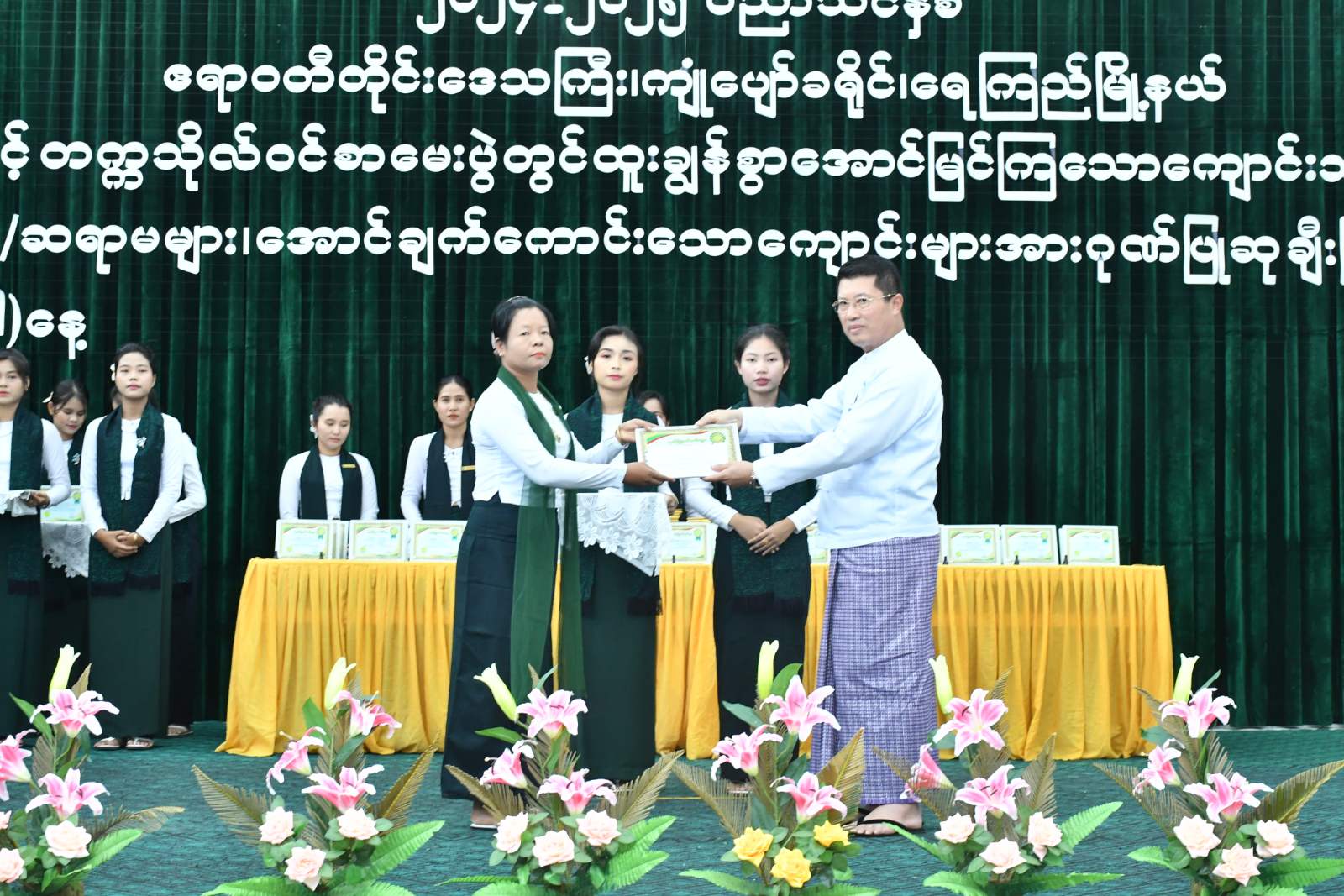 ဆက်လက်၍ ၂၀၂၄-၂၀၂၅ပညာသင်နှစ်၊ လူရည်ချွန်များ၊ မြို့နယ်အဆင့် အောင်ချက်အကောင်းဆုံး ပထမ၊ ဒုတိယ၊ တတိယဆုရရှိသည့် အခြေခံပညာအထက်တန်းနှင့် အထက်တန်းကျောင်း(ခွဲ)များ၊ လေးဘာသာဂုဏ်ထူးရှင်များကို တိုင်းဒေသကြီးဝန်ကြီးချုပ်ကလည်းကောင်း၊ လေးဘာသာနှင့် သုံးဘာသာ ဂုဏ်ထူးရှင်များကို တိုင်းဒေသကြီးဝန်ကြီးချုပ်၏ ဇနီးကလည်းကောင်း၊ နှစ်ဘာသာနှင့် တစ်ဘာသာဂုဏ်ထူးရရှိသူများ၊ ဘာသာရပ်အလိုက် ဂုဏ်ထူးရရှိအောင် သင်ကြားပေးသော ဆရာ၊ဆရာမများကို လုံခြုံရေးနှင့်နယ်စပ်ရေးရာဝန်ကြီး၊ အစိုးရအဖွဲ့ဝင်ဝန်ကြီးများ၊ တိုင်းဒေသကြီးဥပဒေချုပ်နှင့် တာဝန်ရှိသူအသီးကလည်းကောင်း ဆုများအသီးသီးချီးမြှင့်ပေးအပ်ခဲ့ကြသည်။ ယင်းနောက် တိုင်းဒေသကြီးဝန်ကြီးချုပ်နှင့်ဧည့်သည်တော်များသည် ကျောင်းသား၊ ကျောင်းသူလေးများ၏ တေးသီချင်များဖြင့် သီဆိုဖျော်ဖြေမှုများကို ကြည့်ရှုအားပေးခဲ့ပြီး ရေကြည်မြို့ အ.ထ.က-မြို့မမှ ကျောင်းသား၊ကျောင်းသူများက “ဇာတိမာန်” သီချင်းဖြင့်သီဆိုဖျော်ဖြေကာ စုပေါင်းမှတ်တမ်းတင်ဓာတ်ပုံများရိုက်ကူးခဲ့ကြပြီးအခမ်းအနားကို ရုပ်သိမ်းခဲ့သည်။