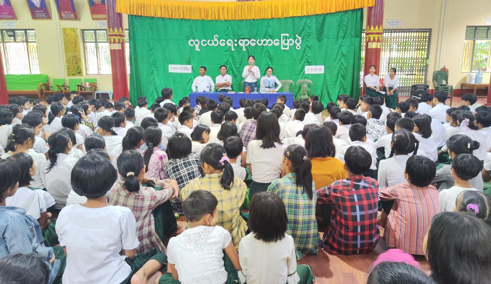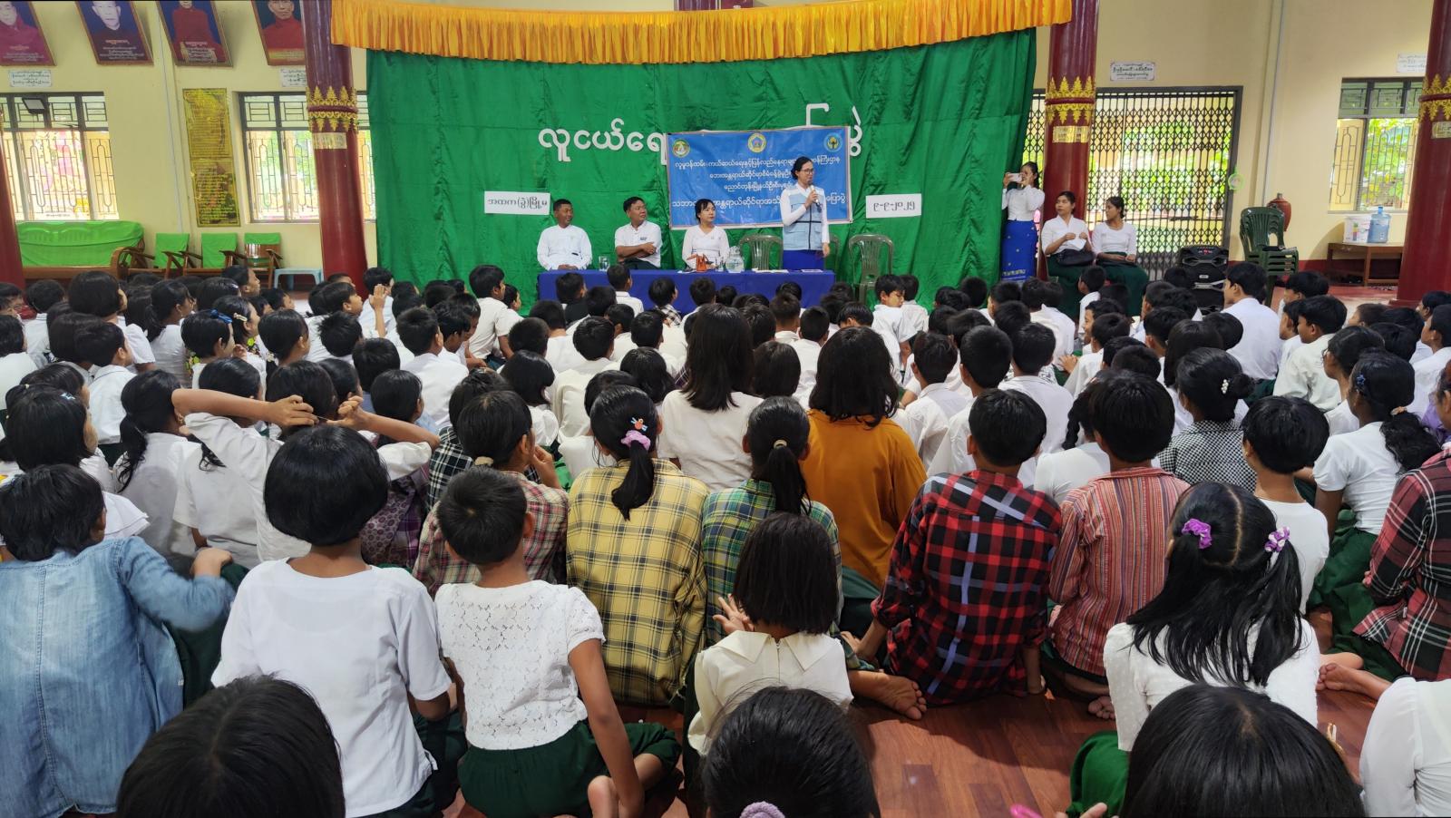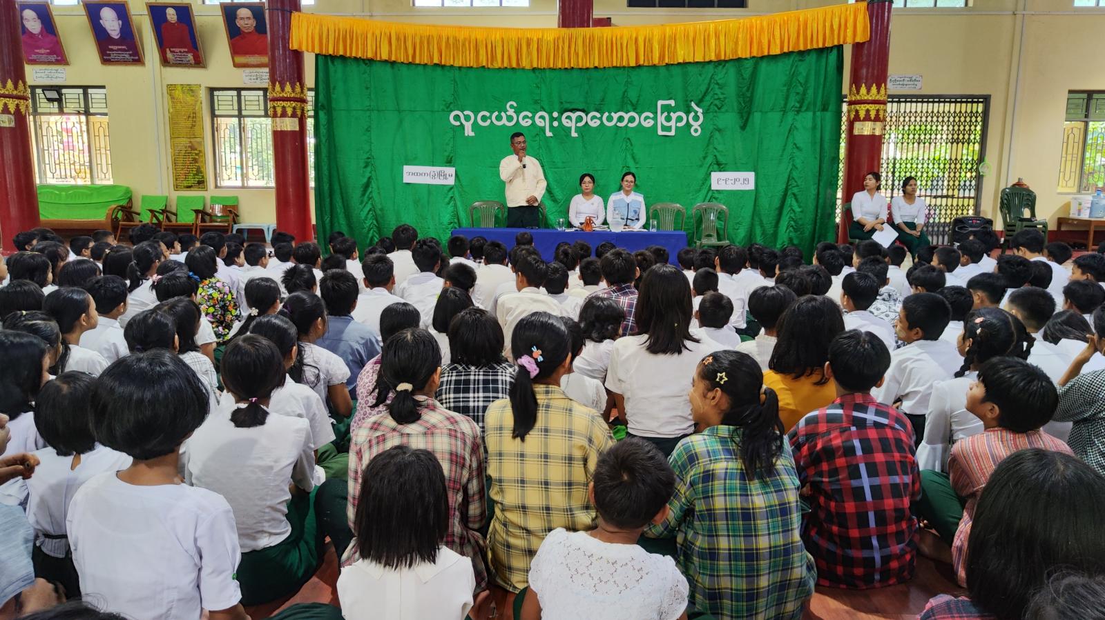 ရှေးဦးစွာ မြို့မအခြေခံပညာအထက်တန်းကျောင်းခွဲ ကျောင်းအုပ်ဆရာကြီးက ကျောင်းသား/ ကျောင်းသူများ အသိပညာဗဟုသုတရရှိစေသော အကြောင်းအရာများကို လိုက်နာ မှတ်သားကြရန်လိုကြောင်း အဖွင့်အမှာစကားပြောကြားပြီး စာရေးဆရာမင်းဝေမှူးက စာပေဖတ်သည့် အလေ့အထကောင်းများ ရရှိစေရေးနှင့် စာပေဖတ်ရှုခြင်း အကျိုးကျေးဇူးများ၊ လိမ္မာယဉ်ကျေးစေရန်အတွက် ယဉ်ကျေးမှုအခြေခံများကိုလည်းကောင်း၊ မြို့နယ်ပြန်ကြားရေးနှင့်ပြည်သူ့ဆက်ဆံရေးဦးစီးဌာန၊ ဦးစီးအရာရှိ ဒေါ်တင်တင်လှိုင်က လူကုန်ကူးမှုတားဆီးကာကွယ်ရေးအန္တရာယ်များနှင့်ပတ်သက်၍ ဆောင်ရန်၊ ရှောင်ရန်များ၊ စာပေဖတ်ရှုခြင်း အကျိုးကျေးဇူးများ စသည့် လူငယ်လူရွယ်များနှင့် ပတ်သက်သည့် လူငယ်ရေးရာအသိပညာပေး အကြောင်းအရာများကိုလည်းကောင်း၊ မြို့နယ်ဘေးအန္တရာယ်ဆိုင်ရာ စီမံခန့်ခွဲမှုဦးစီးဌာန၊ ဦးစီးမှူးဒေါ်နွယ်နီမြင့်က သဘာဝဘေးအမျိုးအစားများ၊ သဘာဝဘေးအန္တရာယ်များအတွက် ကြိုတင်ပြင်ဆင်ရန်များ၊ သတိပေးချက်ရလျှင် ဆောင်ရွက်ရန်များ၊ ဘေးအန္တရာယ်များဖြစ်ပေါ်နေချိန်တွင် လိုက်နာရမည့်အချက်များနှင့် ရှောင်ရှားသင့်သည့် အချက်များကိုလည်းကောင်း အသိပညာပေးဟောပြောခဲ့သည်။