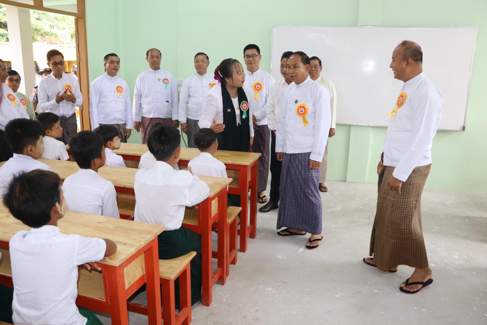 ယင်းနောက် တိုင်းဒေသကြီး ဝန်ကြီးချုပ်နှင့် တာဝန်ရှိသူများက ကျောင်းဆောင် သစ်ကဗ္ဗည်းမှတ်တမ်းအား အမွှေးနံ့သာရေများ ပတ်ဖျန်းပေးကာ ကျောင်းဆောင်သစ်အတွင်း ကျောင်းသား၊ကျောင်းသူများ ပညာသင်ကြားနေမှုများအား လိုက်လံကြည့်ရှုခဲ့ကြသည်။