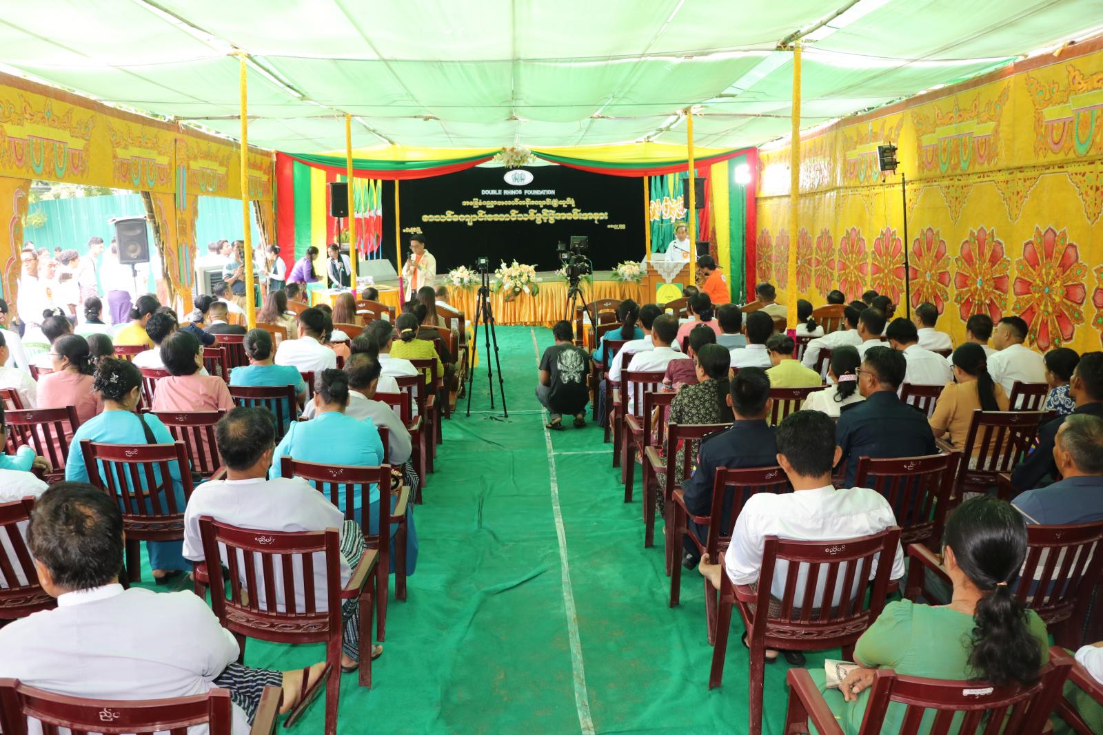 ဆက်လက်ပြီး ကြံ့နှစ်ကောင်ဖောင်ဒေးရှင်းမှ တာဝန်ရှိသူတစ်ဦးက ကျောင်းဆောင် သစ်ဆောက်လုပ်လှူဒါန်းရခြင်းနှင့် ပတ်သက်၍ ရှင်းလင်းပြောကြားပြီး တိုင်းဒေသကြီးပညာရေးမှူးက ကျေးဇူးတင်စကား ပြန်လည်ပြောကြားသည်။