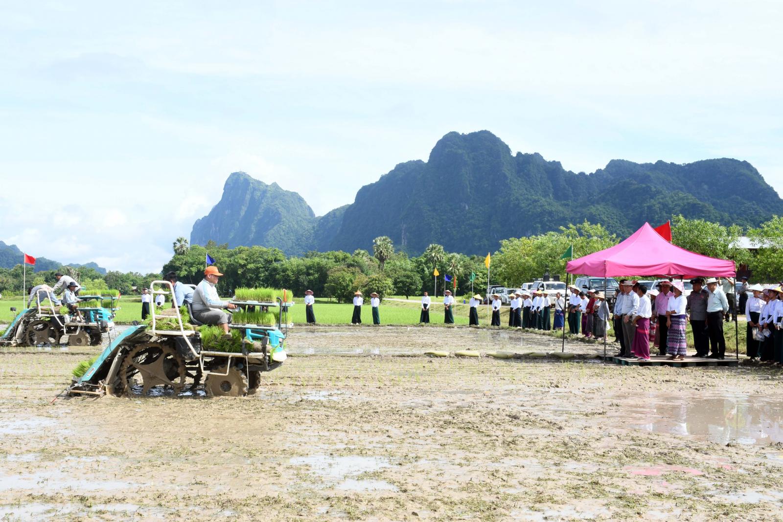 ဆက်လက်၍ ပြည်နယ်စက်မှုလယ်ယာဦးစီးဌာန၊ အမှတ် (၂၀) စက်မှုလယ်ယာစခန်းမှ Kubota ခြောက်တန်း သွားကောက်စိုက်စက် ၂ စီး၊ ကောက်စိုက်စက်ဖြင့် တွဲဖက်သုံး (၁၀) တန်းသွား မျိုးစေ့ချကိရိယာတစ်စီးတို့ဖြင့် မိုးစပါးစိုက်ပျိုးခြင်း ကွင်းသရုပ်ပြသရာ ပြည်နယ်ဝန်ကြီးချုပ်နှင့်အဖွဲ့၊ ဒုံးရင်းအခြေခံပညာနှင့်စက်မှု၊စိုက်ပျိုး၊မွေးမြူရေးအထက်တန်းကျောင်းမှ ကျောင်းသား၊ ကျောင်းသူများ၊ ကော့ထမ္မလိန်း၊ ကော့တရုတ်ရ၊ တရုတ်လှ၊ ကော့နန်းသာ၊ တဝန်တာ ကျေးရွာများမှ တောင်သူလယ်သမားများ တတ်ရောက်ကြည့်ရှုလေ့လာခဲ့ကြပြီး စက်ကိရိယာများနှင့် ပတ်သက်၍ သိရှိလိုသည်များအား စက်မှုလယ်ယာဦးစီးဌာန ပြည်နယ်ဦးစီးမှူးနှင့် ဝန်ထမ်းများထံ မေးမြန်းဆွေးနွေးခဲ့ကြရာ ပြည်နယ်ဦးစီးမှူးနှင့်ဝန်ထမ်းများက ပြန်လည်ရှင်းလင်းဖြေကြားပေးခဲ့ကြောင်း သိရသည်။