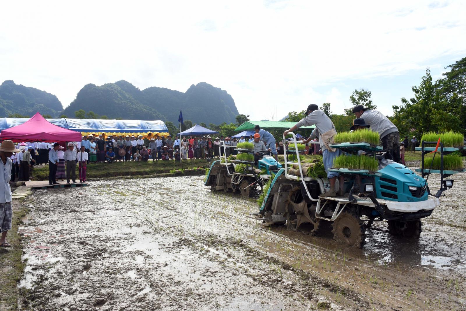 ထို့နောက် စက်မှုလယ်ယာဦးစီးဌာန၊ ပြည်နယ်ဦးစီးမှူးက Kubota ခြောက်တန်းသွားကောက်စိုက်စက်၊ ကောက်စိုက်စက်ဖြင့် တွဲဖက်သုံး (၁၀) တန်းသွား မျိုးစေ့ချကိရိယာနှင့် လက်ဆွဲမျိုးစေ့ချကိရိယာ (Drum Seeder) များနှင့်ပတ်သက်၍ ရှင်းလင်းပြောကြားပြီး ပြည်နယ်ဝန်ကြီးချုပ်၊ ပြည်နယ်တရားလွှတ်တော်တရားသူကြီးချုပ်၊ ပြည်နယ်အစိုးရအဖွဲ့ဝင်များက တက်ရောက်လာသော ကော့ထမ္မလိန်း၊ ကော့တရုတ်ရ၊ တရုတ်လှ၊ ကော့နန်းသာ၊ တဝန်တာ ကျေးရွာများမှ တောင်သူဦးကြီးများအား လက်ဆွဲမျိုးစေ့ချကိရိယာ (Drum Seeder)များ ကို အခမဲ့ပေးအပ်ချီးမြှင့်ခဲ့ကြသည်။