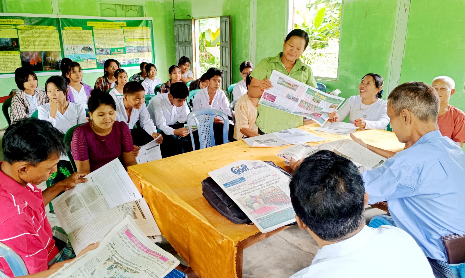 ဧရာဝတီတိုင်းဒေသကြီး၊ မြန်အောင်ခရိုင်၊ ကြံခင်းမြို့နယ်၊ ပေါက်တိုင်းကျေးရွာ၊ ပညာအလင်း စာကြည့်တိုက်၌ ယနေ့နေ့လယ်ပိုင်းက စာကြည့်တိုက်များဖွံ့ဖြိုးတိုးတက်ရေး လုပ်ငန်းညှိနှိုင်း အစည်းအဝေးနှင့် အသိပညာပေးလုပ်ငန်းများကွင်းဆင်း ဆောင်ရွက်ကြသည်။