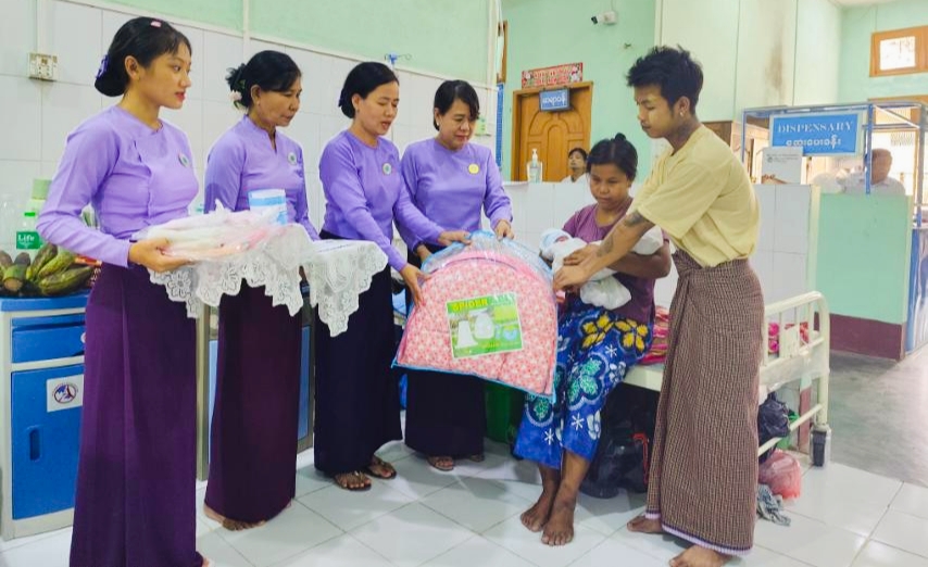 ဧရာဝတီတိုင်းဒေသကြီး ကျုံပျော်ခရိုင် ရေကြည်မြို့နယ်ပြည်သူ့ဆေးရုံဆရာဝန်ကြီး ဒေါက်တာတင်ထွန်းအောင် ဦးဆောင်ပြီး ကျန်းမာရေးဝန်ထမ်းများက အောင်မြင်စွာခွဲစိတ်မွေးဖွားပေးခဲ့သည့် သက်ဦးမိန်းကလေးနှစ်မွှာပူးမွေးဖွားသော ကွမ်းသီးချောင်းကျေးရွာအုပ်စု၊ အရှေ့ရွာသစ်ကျေးရွာနေ မခင်ပပလှိုင်အားထောက်ပံ့ငွေနှင့် အာဟာရဖြည့်စွက်စာများပေးအပ်ခြင်းကို ယနေ့နံနက် (၁၁) နာရီခွဲအချိန်ကမြို့နယ် ပြည်သူ့ဆေးရုံ၌ ထောက်ပံ့ခဲ့ကြောင်းသိရသည်။