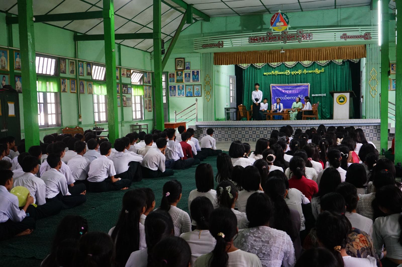 ဧရာဝတီတိုင်းဒေသကြီး၊ ဖျာပုံခရိုင်၊ ဘိုကလေးမြို့နယ်ရှိ အမှတ်(၁) အခြေခံပညာ အထက်တန်းကျောင်း အောင်ဆန်းခန်းမတွင် ယနေ့နေ့လယ်(၁)နာရီ အချိန်က လူငယ်စကားဝိုင်းနှင့် ဟောပြောပွဲကျင်းပဆောင်ရွက်သည်။