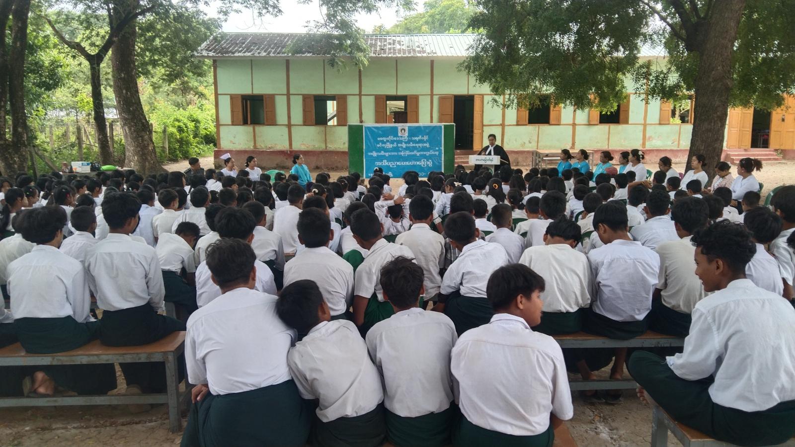 ဆက်လက်၍ တရားလွှတ်တော်ရှေ့နေ ဒေါ်ခင်မြမူက အကြမ်းဖက်မှုဥပဒေအကြောင်း ဆွေးနွေးဟောပြောခဲ့ပြီး ကျောင်းအုပ်ဆရာမကြီး ဒေါ်ဇာခြည်ထွန်းက ကျေးဇူးတင်စကား ပြောကြားသည်။