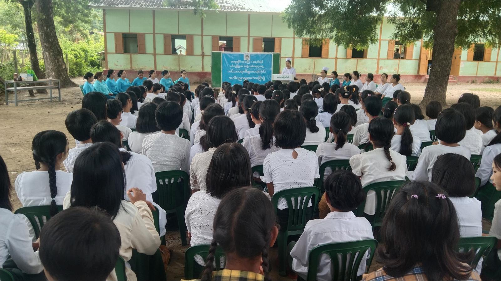 ထို့နောက် သားအိမ်ခေါင်းကင်ဆာရောဂါအကြောင်း အသိပညာပေးဟောပြောပွဲကို ကျင်းပရာ အမျိုးသမီးကျန်းမာရေး ဆရာမဒေါ်မာမာအေးက သားအိမ်ခေါင်းကင်ဆာရောဂါဖြစ်ပွားမှုအခြေအနေ၊ ရောဂါလက္ခဏာများ၊ ကူးစက်ပုံများ၊ ကာကွယ်နိုင်သော ရောဂါဖြစ်သဖြင့် အသက် (၉)နှစ်မှ (၁၂)နှစ် အရွယ်အမျိုးသမီးငယ်များ ကာကွယ်ဆေးထိုးထားသင့်ကြောင်း၊ ရောဂါဖြစ်စ အစောပိုင်းလက္ခဏာများ၊ ရောဂါရင့်ချိန်တွေ့ရှိရသော လက္ခဏာများစသည့် သားအိမ်ခေါင်းကင်ဆာဆိုင်ရာအကြောင်းအရာများကို ဟောပြောသည်။
