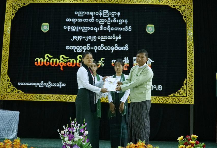 ဆက်လက်၍ ဗိုလ်မှူးချုပ်ဇော်မင်းထက်၊ ခရိုင်စီမံခန့်ခွဲရေးနှင့်အုပ်ချုပ်ရေးကော်မတီဥက္ကဋ္ဌ ဦးမြင့်နိုင်နှင့် ကော်မတီဝင်များ၊ တာဝန်ရှိသူများက (၇၈)နှစ်မြောက် အာဇာနည်နေ့အထိမ်းအမှတ် ဆောင်းပါးနှင့် စာစီစာကုံးပြိုင်ပွဲ၊ မူးယစ်ဆေးဝါးအလွဲသုံးမှုနှင့် တရားမဝင်ရောင်းဝယ်မှုတိုက်ဖျက်ရေးနေ့အထိမ်းအမှတ် ပန်းချီပြိုင်ပွဲ၊ ကမ္ဘာ့ဆရာများနေ့အထိမ်းအမှတ် စာစီစာကုံးနှင့် ကဗျာပြိုင်ပွဲ၊ မိုးရာသီအားကစားပွဲတော် ဘောလီဘောနှင့်စားပွဲတင် တင်းနစ်ပြိုင်ပွဲ စသည့် ဉာဏ၊ ကာယပြိုင်ပွဲများအလိုက်ဆုရရှိသော သင်တန်းသား၊ သင်တန်းသူများအား ဆုများအသီးသီးပေးအပ်ချီးမြှင့်ကြရာ သင်တန်းသား၊ သင်တန်းသူများက တေးသီချင်း၊ အကအလှများဖြင့် သီဆိုကပြဖျော်ဖြေခဲ့ကြကြောင်း သိရသည်။