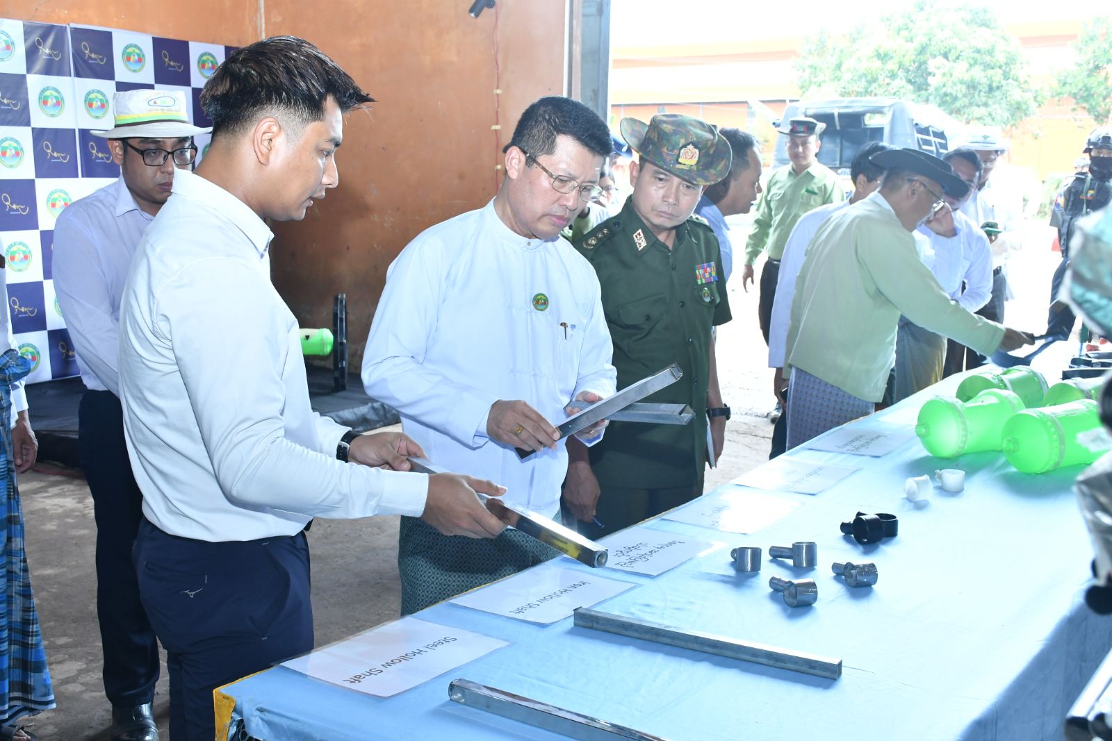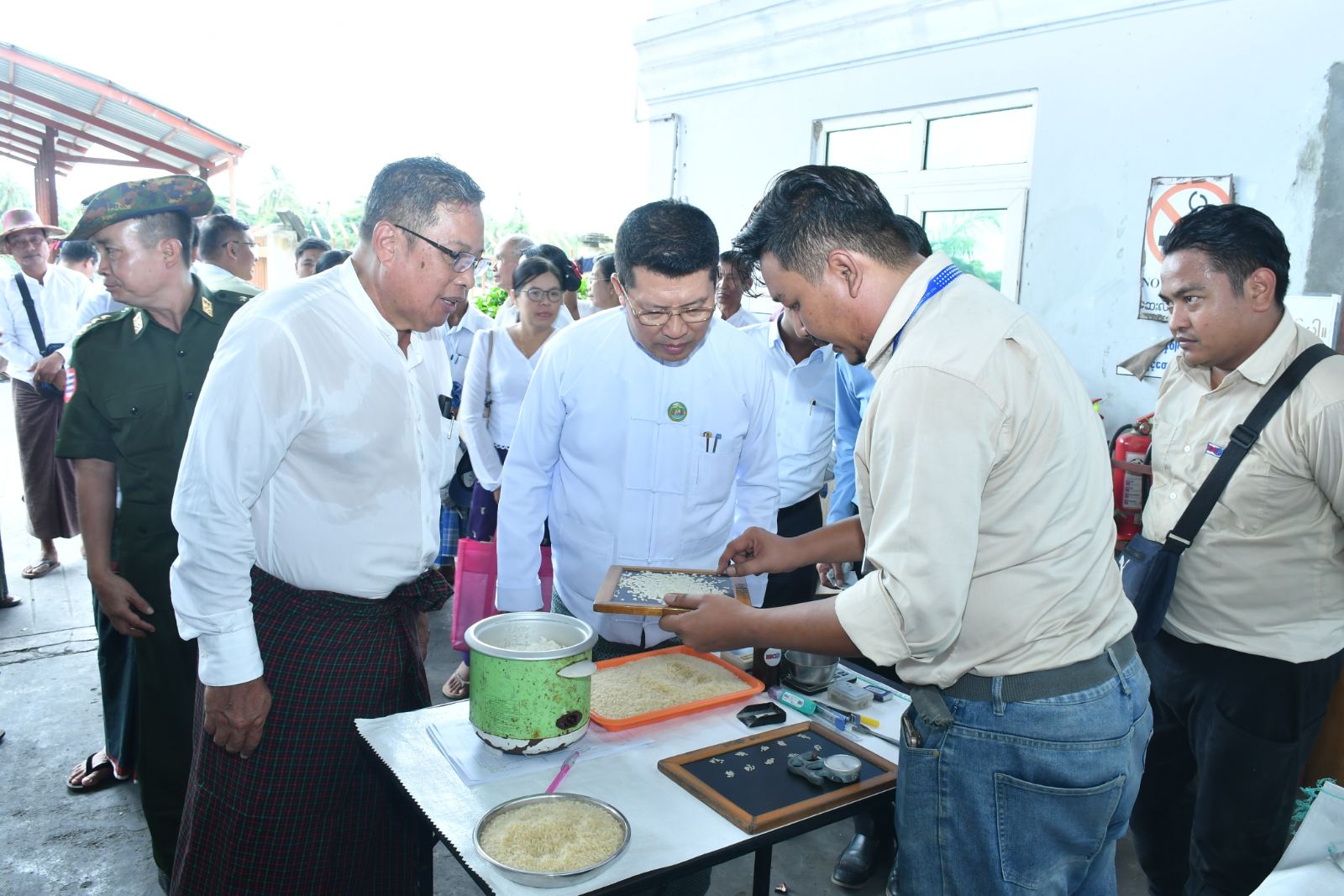 ထို့နောက် တိုင်းဒေသကြီးဝန်ကြီးချုပ်နှင့်အဖွဲ့သည် မြောင်းမြမြို့၊ ကွယ်လွယ်ကျေးရွာ၊ မြောင်းမြစက်မှုဇုန်ရှိ မနောသုခဆန်စက်သို့သွားရောက်၍ တောင်သူများစပါးလာရောက်ရောင်းချနေမှုများကို ကြည့်ရှုအားပေးပြီး ဆန်စက်လုပ်ငန်းရှင်များ၊ တောင်သူများနှင့်တွေ့ဆုံ၍ တောင်သူများအတွက် စိုက်ပျိုးစရိတ်ကာမိပြီး အကျိုးအမြတ်ရှိရန် စီမံဆောင်ရွက်ပေးနိုင်ရေးနှင့် Export Zone ဖော်ဆောင်မည့်ကိစ္စရပ်များကို ဆွေးနွေးခဲ့သည်။ ဆက်လက်၍ ဒီဧရာစက်မှုလက်မှုအလုပ်ရုံသို့သွားရောက်၍ မျိုးစေ့ချကိရိယာ( Drum Seeder)များ ထုတ်လုပ်နေမှုများကို ကြည့်ရှုစစ်ဆေးခဲ့ရာ တာဝန်ရှိသူမှ Drum Seeder ထုတ်လုပ်ရာတွင် အသုံးပြုမည့် ပလတ်စတစ်ဘီး၊ ပလတ်စတစ်ဘူး၊ ပလတ်စတစ်ဆွဲကွင်းနမူနာ၊ သံဆွဲကွင်း၊ Iron/ Steel Hollow Shaft များကို ရှင်းလင်းတင်ပြခဲ့ရာ တိုင်းဒေသကြီးဝန်ကြီးချုပ်က ဒေသနှင့်ကိုက်ညီပြီး အရည်အသွေးကောင်းမွန်သည့် မျိုးစေ့ချကိရိယာ (Drum Seeder) များ ထုပ်လုပ်နိုင်ရေး မှာကြားခဲ့ပြီး စမ်းသပ်စိုက်ခင်းတွင် မျိုးစေ့ချကိရိယာ (Drum Seeder) ဖြင့် စမ်းသပ်စိုက်ပျိုးနေမှုများကို ကြည့်ရှုအားပေးခဲ့သည်။