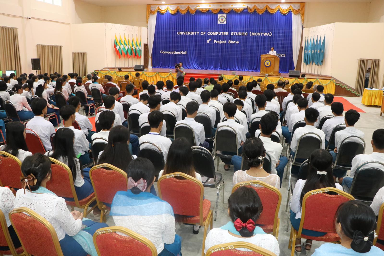 ယင်းနောက် ကွန်ပျူတာတက္ကသိုလ် (မုံရွာ) ပါမောက္ခချုပ်မှ အဋ္ဌမအကြိမ်တီထွင် ဖန်တီးမှုပြပွဲကျင်းပရခြင်းနှင့်ပတ်သက်၍ ရှင်းလင်းပြောကြားပြီး ကွန်ပျူတာတက္ကသိုလ် (မုံရွာ)မှ ကျောင်းသူများက တေးသီချင်းများဖြင့် ကပြဖျော်ဖြေကြသည်။