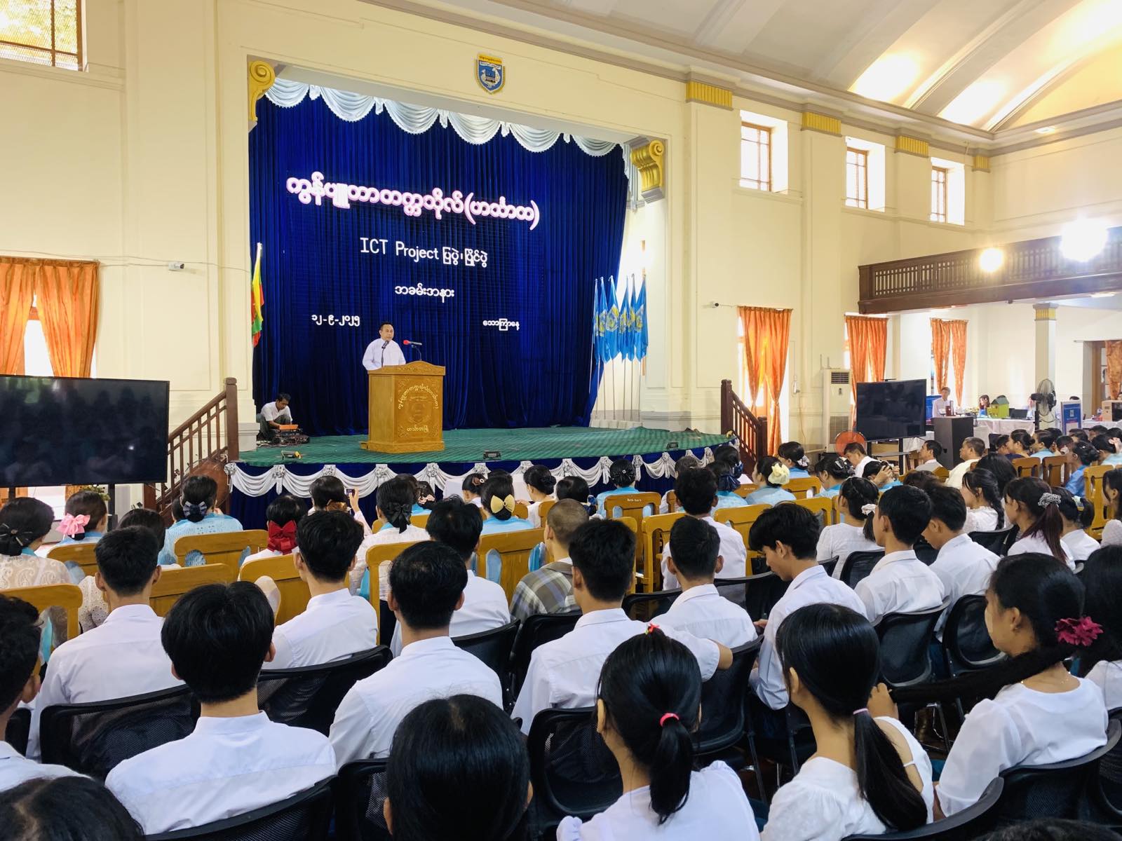 အခမ်းအနားတွင် ကွန်ပျူတာတက္ကသိုလ် (ဟင်္သာတ)၊ ဒုတိယပါမောက္ခချုပ်၊ ဒေါက်တာ ထွန်းမြတ်အောင်က အဖွင့်အမှာစကား ပြောကြားခဲ့ရာတွင် အရည်အချင်းပြည့်ဝသော လူ့စွမ်းအားအရင်းအမြစ်များ မွေးထုတ်ပေးရန်၊ နိုင်ငံ့အကျိုးပြု၊ ဒေသအကျိုးပြု၊ MSME အကျိုးပြု၊ ဌာနဆိုင်ရာများအတွက် e-Government အထောက်အကူပြု ICT အခြေပြု Project များနှင့် သုတေသနလုပ်ငန်းများ ဖွံ့ဖြိုးလာစေရန်၊ ကျောင်းသား၊ ကျောင်းသူများ အလုပ်အကိုင်အခွင့်အလမ်း ပိုမိုရရှိလာစေရန်၊ ဒေသတွင်းကျောင်းသား လူငယ်များ ICT နည်းပညာဗဟုသုတရရှိစေရန်နှင့် နိုင်ငံတော်၏ စီးပွားရေးဖွံ့ဖြိုးတိုးတက်မှုအတွက် ICT နည်းပညာ၏ အရေးပါမှုကို သိရှိစေရန်ရည်ရွယ်၍ ဤအခမ်းအနားကို ကျင်းပခြင်း ဖြစ်ကြောင်း ရှင်းလင်းပြောကြားခဲ့ပါသည်။ ထို့နောက် ဆုရရှိသူများအား ကြေညာ၍ ဆုရရှိသူများက မိမိတို့ပြုလုပ်ထားသော Project များကို ရှင်းလင်းပြသခဲ့ကြပြီး ဒုတိယ ပါမောက္ခချုပ်၊ ဒေါက်တာ ထွန်းမြတ်အောင်နှင့် တာဝန်ရှိသူအသီးသီးက ဆုများ အသီးသီးချီးမြှင့်ခဲ့ကြပါသည်။