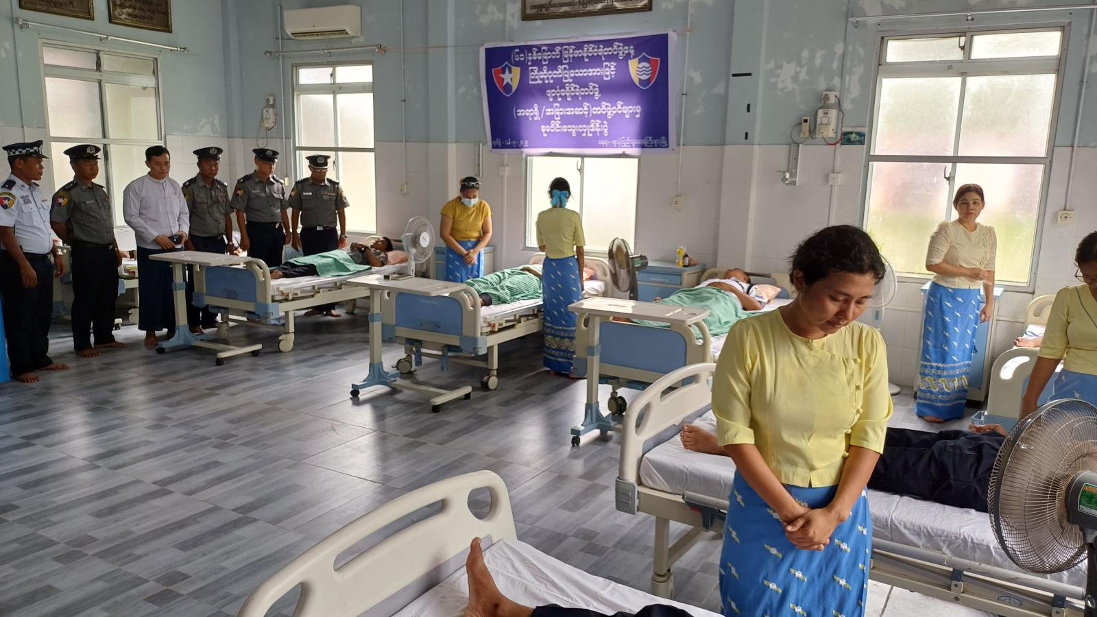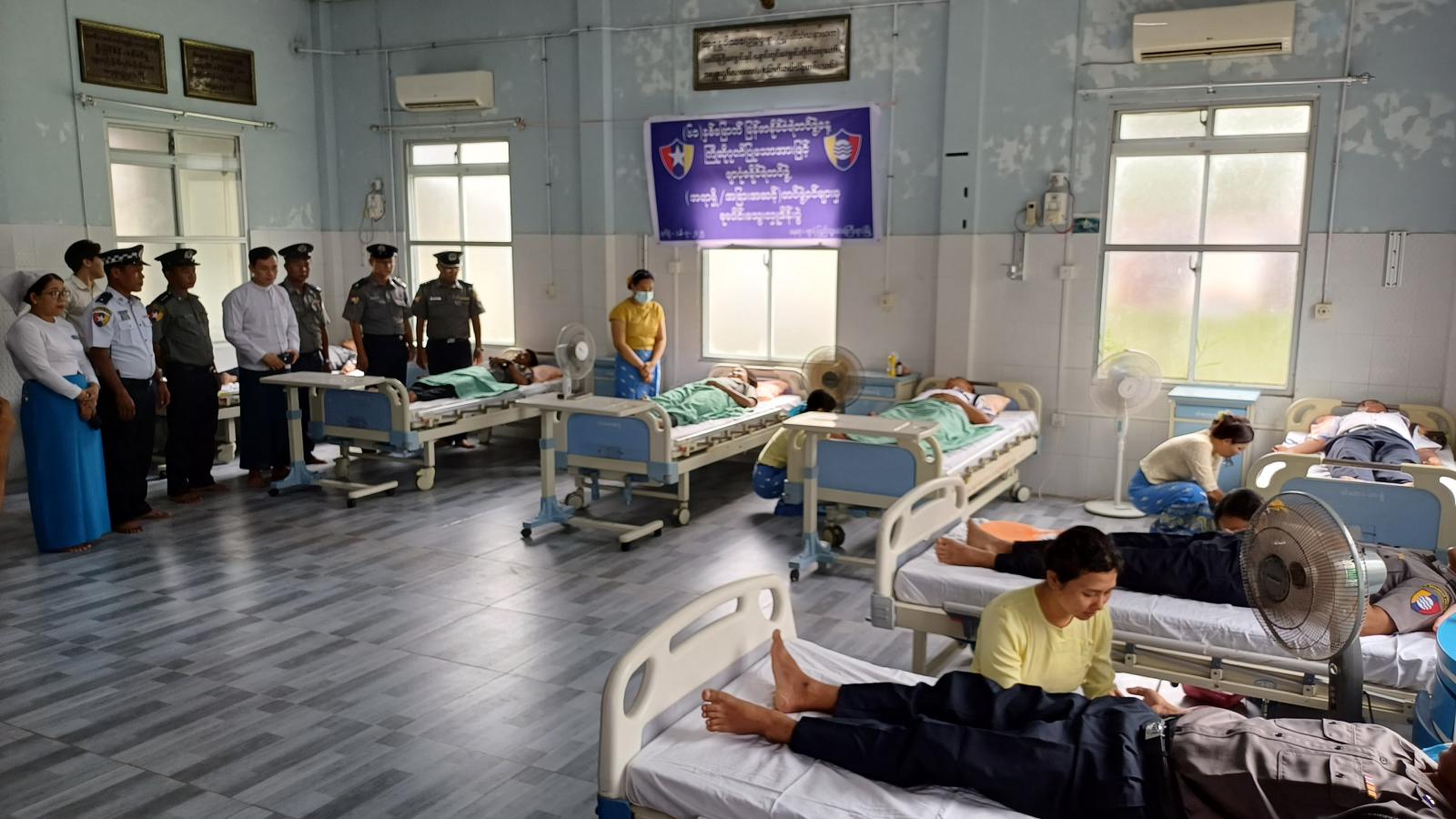 အဆိုပါ (၆၁)နှစ်မြောက် မြန်မာနိုင်ငံရဲတပ်ဖွဲ့နေ့ကို ကြိုဆိုဂုဏ်ပြုသောအားဖြင့် စုပေါင်းသွေးလှူဒါန်းရာတွင် ဖျာပုံခရိုင်/မြို့နယ်ရဲတပ်ဖွဲ့ဝင်များနှင့်အမှတ် (၈၀) ယာဉ်ထိန်းတပ်ဖွဲ့စု (ဖျာပုံ) တို့မှ(အရာရှိ/အခြားအဆင့်)တပ်ဖွဲ့ဝင်များ စုပေါင်းပါဝင် သွေးလှူးဒါန်းကြပြီး ဖျာပုံခရိုင်ရဲတပ်ဖွဲ့မှ ယာယီဒုတိယရဲမှူးကြီး သန်းဦး၊ ဖျာပုံပြည်သူ့ဆေးရုံကြီးမှ ဆေးရုံအုပ်ကြီး ဒေါက်တာရဲဝင်း၊ ဖျာပုံမြို့နယ်ရဲတပ်ဖွဲ့မှူး ရဲမှူးဌေးနိုင်ဦး၊ လုံခြုံရေးတပ်ခွဲမှူး ရဲမှူးစိန်လွင်အောင်နှင့် အမှတ် (၈၀) ယာဉ်ထိန်းတပ်ဖွဲ့စု(ဖျာပုံ) မှ ဒုရဲအုပ်ဝိုင်းအောင်ချစ်တို့က လှည့်လည်ကြည့်ရှု အားပေးကြသည်။ ထို့နောက် သွေးလှူဒါန်းကြသူများအား ဖျာပုံခရိုင်ရဲတပ်ဖွဲ့မှ ယာယီဒုတိယရဲမှူးကြီး သန်းဦးနှင့်တာဝန်ရှိသူများမှ ဖြည့်စွက်စာ ကြက်ဥနှင့် အားဖြည့်အချိုရည်များ လိုက်လံလှူဒါန်းပေးခဲ့ကြောင်း သိရသည်။