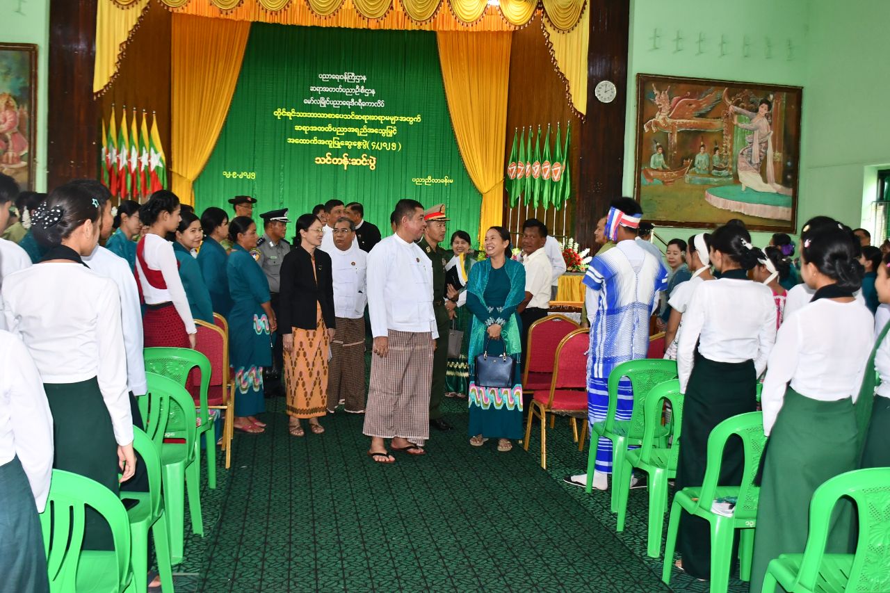 ဆက်လက်၍ သင်တန်းသူလေးများက မွန်၊ ကရင်၊ ပအို့ဝ်တိုင်းရင်းသားအကအလှများဖြင့် ဖျော်ဖြေတင်ဆက်နေမှုကို မွန်ပြည်နယ်ဝန်ကြီးချုပ်နှင့် ပြည်နယ်အစိုးရအဖွဲ့ဝင်ဝန်ကြီးများက ကြည့်ရှုအားပေးပြီး တက်ရောက်လာသော သင်တန်းသား၊ သင်တန်းသူများအား ရင်းရင်းနှီးနှီး လိုက်လံနှုတ်ဆက်အားပေး စကားပြောကြားခဲ့သည်။