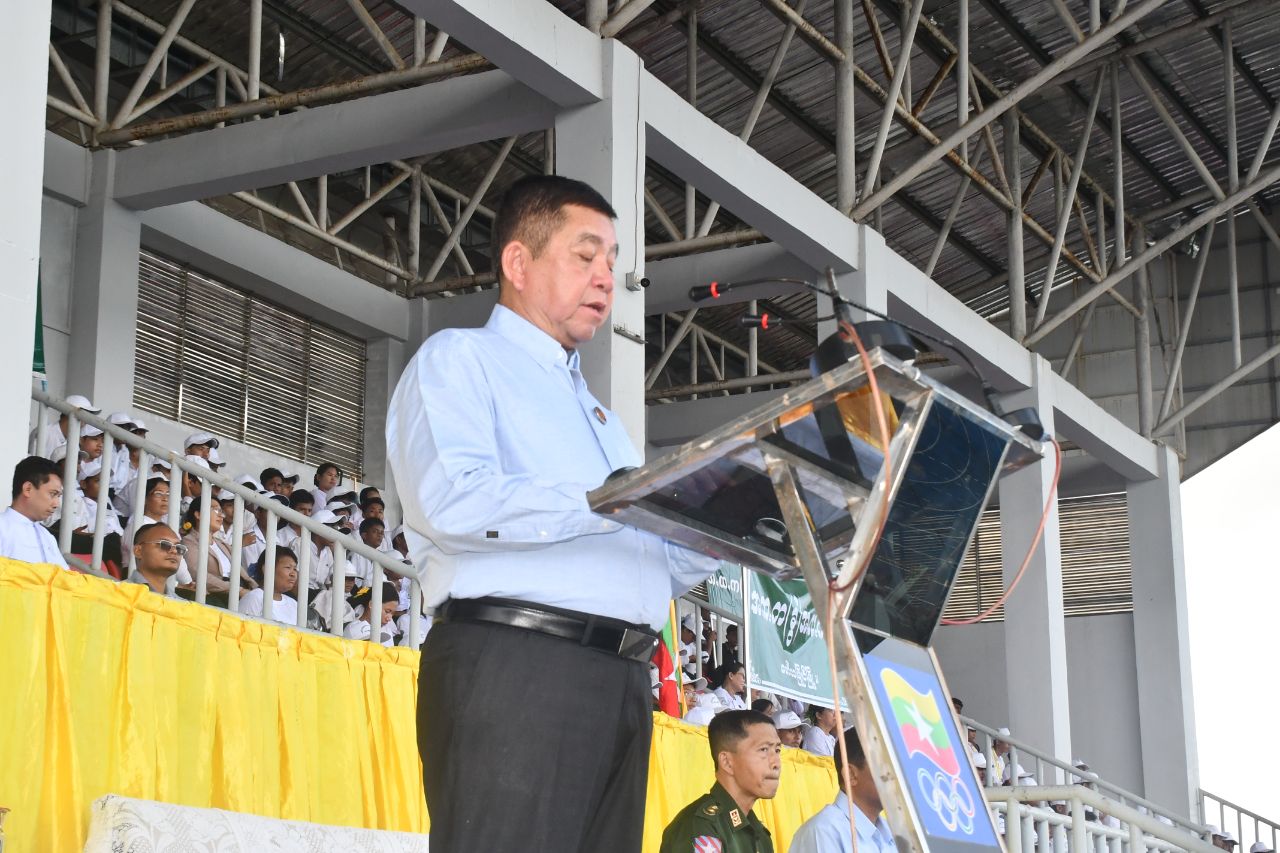 ဆက်လက်၍ ပြည်နယ်ဝန်ကြီးချုပ်နှင့်အဖွဲ့သည် မော်လမြိုင်မြို့ ရာမညအားကစားကွင်း၌ ကျင်းပပြုလုပ်သော ၂၀၂၅ ခုနှစ် အခြေခံပညာ ကျောင်းသားအားကစားပြိုင်ပွဲ ဖွင့်ပွဲအခမ်းအနားသို့ တက်ရောက်ပြီး ဦးစွာ အခြေခံပညာကျောင်းများမှ ပြိုင်ပွဲဝင်အားကစား သမားများနှင့် ဘင်ခရာ၊ ပန်းပွားအဖွဲ့များက ကွင်းအတွင်းနေရာယူ၍ အားကစားသမားများက အားကစားသစ္စာဓိဋ္ဌာန်ရွတ်ဆိုပြီး ပြည်နယ်ဝန်ကြီးချုပ် ဦးအောင်ကြည်သိန်းက မွန်ပြည်နယ် အနေနဲ့ နိုင်ငံတော်၏ မျိုးဆက်သစ်အားကစားသမားများရရှိရေး ကူညီပံ့ပိုးပေးနိုင်ရန် ကျောင်းပေါင်းစုံ အားကစားပြိုင်ပွဲကြီးကို ကျင်းပပြုလုပ်ပေးရခြင်း ဖြစ်ပြီး အားကစားပွဲတော်မှာလည်း စည်းကမ်းကျနစွာနဲ့ ကြိုးစားပြီး ပြည်နယ်ကိုယ်စားပြု၍ နိုင်ငံတော်အတွက် အားထားရမဲ့ အားကစားသမားများဖြစ်အောင် ကြိုးစားကြဖို့လိုအပ်ကြောင်း၊ အားကစားမောင်၊ မယ် ကျောင်းသူလေးများအနေနဲ့ ကျန်းမာကြံ့ခိုင်ပြီး ပညာထူးချွန် လူရည်မွန်များဖြစ်အောင်၊ ဘက်စုံထူးချွန်တဲ့ လက်ရွေးစင်အားကစားသမားများဖြစ်အောင် စွမ်းစွမ်းတမံ ကြိုးစားဆောင်ရွက်ပေးကြရန် တိုက်တွန်းလိုကြောင်းဖြင့် အမှာစကားပြောကြားခဲ့သည်။