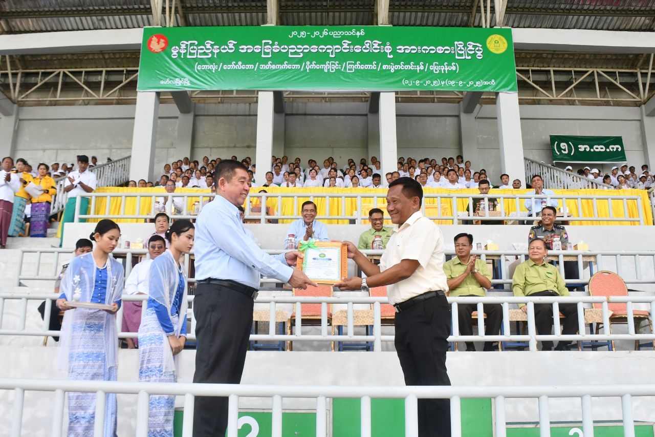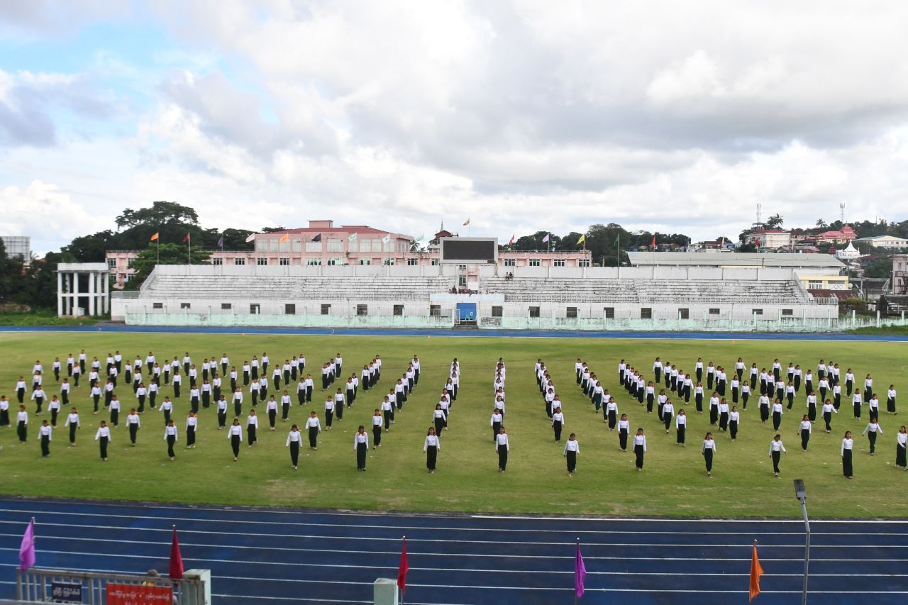 ထို့နောက် အားကစားသမားများက ကွင်းအတွင်းမှ ပြန်လည်ထွက်ခွာပြီး အမှတ်(၈)အခြေခံပညာအထက်တန်းကျောင်းမှ ဘင်ခရာအဖွဲ့နှင့် ပန်းပွားအဖွဲ့ ကျောင်သူလေးများ၏ သရုပ်ပြတင်ဆက်နေမှုကိုလည်းကောင်း၊ အမှတ်(၄)အခြေခံပညာ အထက်တန်းကျောင်းနှင့် အမှတ်(၆)အခြေခံပညာအထက်တန်းကျောင်းများမှ အခြေခံပညာကျောင်းများတွင် သင်ရိုးဝင်ဖြစ်သော ကိုယ်ကာယကြံ့ခိုင်ရေး အတွဲအမှတ်(၃)(၄)ဖြင့် သရုပ်ပြတင်ဆက်ေနမှု၊ Physical Fitness Dance အကဖြင့် သရုပ်ပြတင်ဆက်နေမှုနှင့် အမျိုးသား၊ အမျိုးသမီး မီတာ(၁၀၀) ၊ မီတာ (၂၀၀) ၊ မီတာ (၄၀၀) ဗိုလ်လုပွဲယှဥ်ပြိုင်နေမှုတို့ကို ပြည်နယ်ဝန်ကြီးချုပ်၊ ပြည်တရားလွှတ်တော် တရားသူကြီးချုပ်နှင့် ပြည်နယ်အစိုးရအဖွဲ့ဝင် ဝန်ကြီးများက ကြည့်ရှုအားပေးခဲ့သည်။