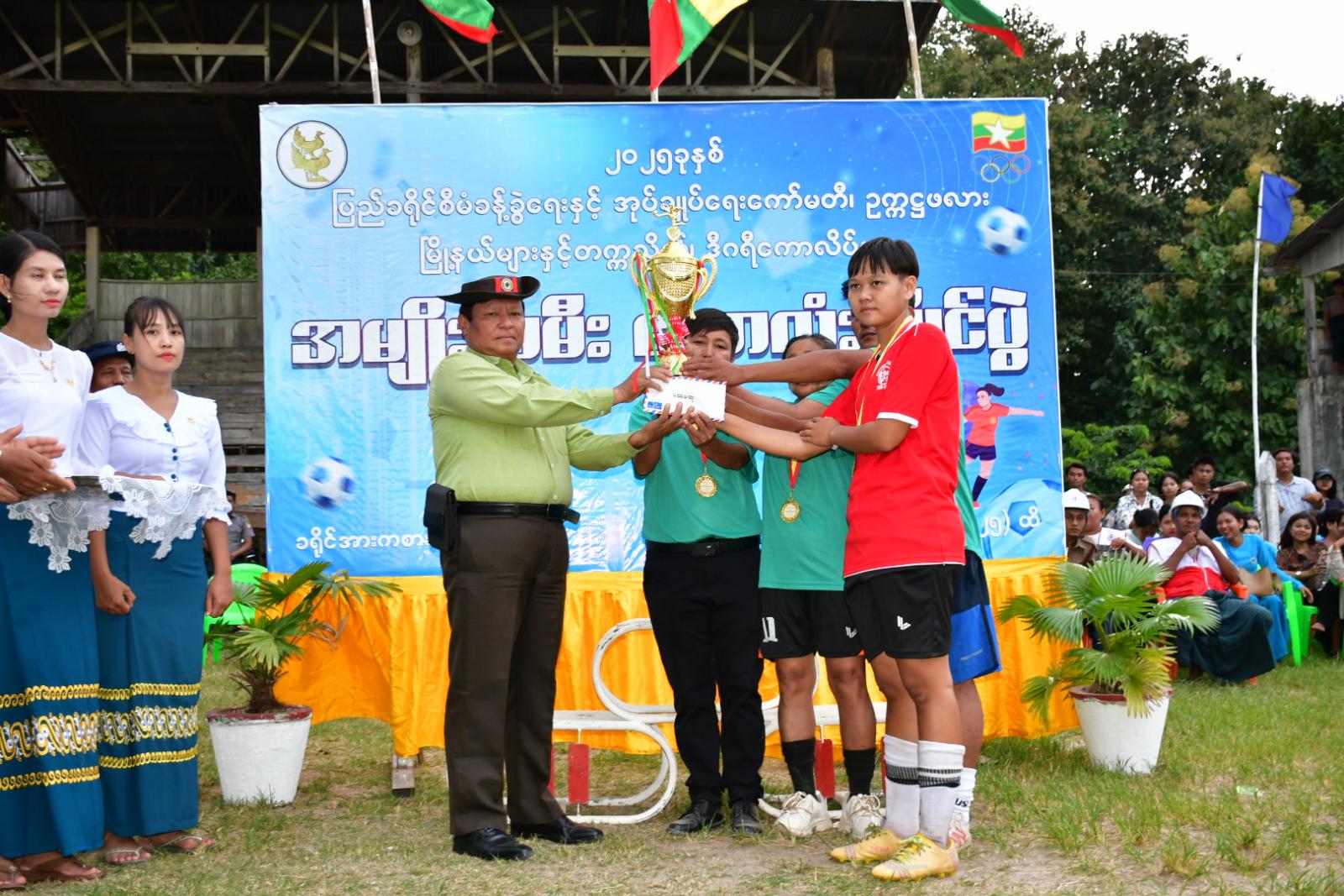 ၂၀၂၅ခုနှစ်၊ ပြည်ခရိုင် စီမံခန့်ခွဲရေးနှင့်အုပ်ချုပ်ရေးကော်မတီ ဥက္ကဋ္ဌဖလား U-25 အမျိုးသမီးဘောလုံးပြိုင်ပွဲ ဗိုလ်လုပွဲနှင့် ဆုချီးမြှင့်ပွဲအခမ်းအနားကို ယမန်နေ့ညနေ (၄)နာရီက ပြည်မြို့ ခေတ္တရာရွှေပြည် ခရိုင်အားကစားကွင်း၌ ကျင်းပသည်။