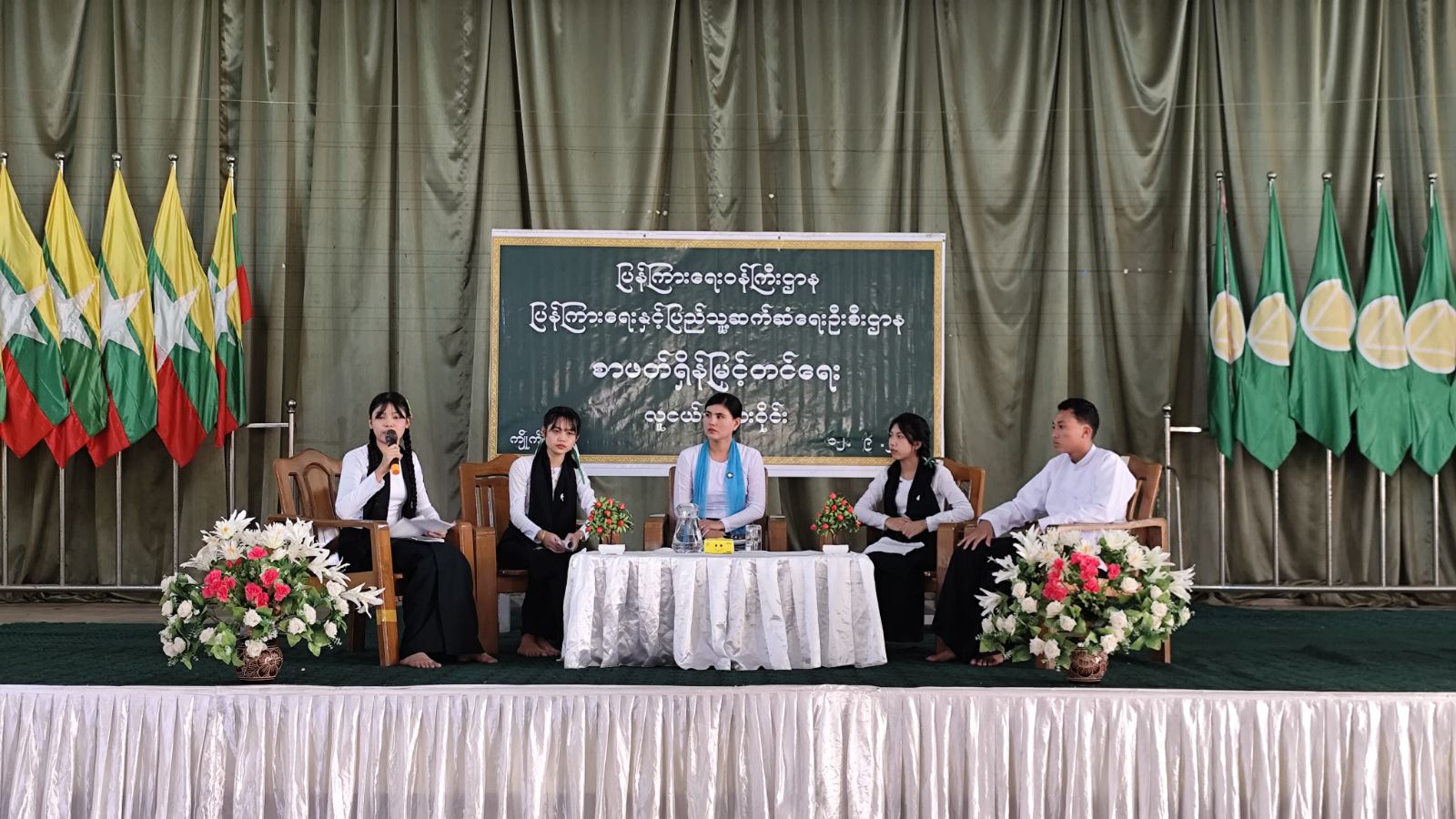 ထို့နောက် ပြန်ကြားရေးနှင့်ပြည်သူ့ဆက်ဆံရေးဦးစီးဌာနမှ သိမှတ်ဖွယ်ရာ နံရံကပ်စာစောင်များ၊ စာအုပ်စာစောင်များကို ခင်းကျင်းပြသထားရာ လူငယ်စကားဝိုင်းဆွေးနွေးပွဲသို့ တက်ရောက်လာကြသူတို့က စိတ်ပါဝင်စားစွာဖြင့် ကြည့်ရှုလေ့လာ မှတ်သားခဲ့ကြကြောင်း သိရသည်။