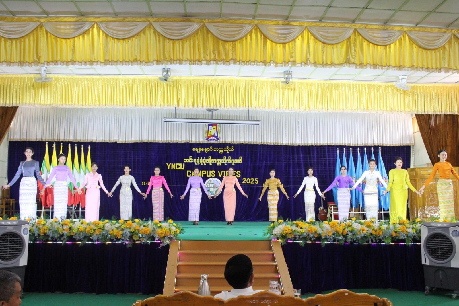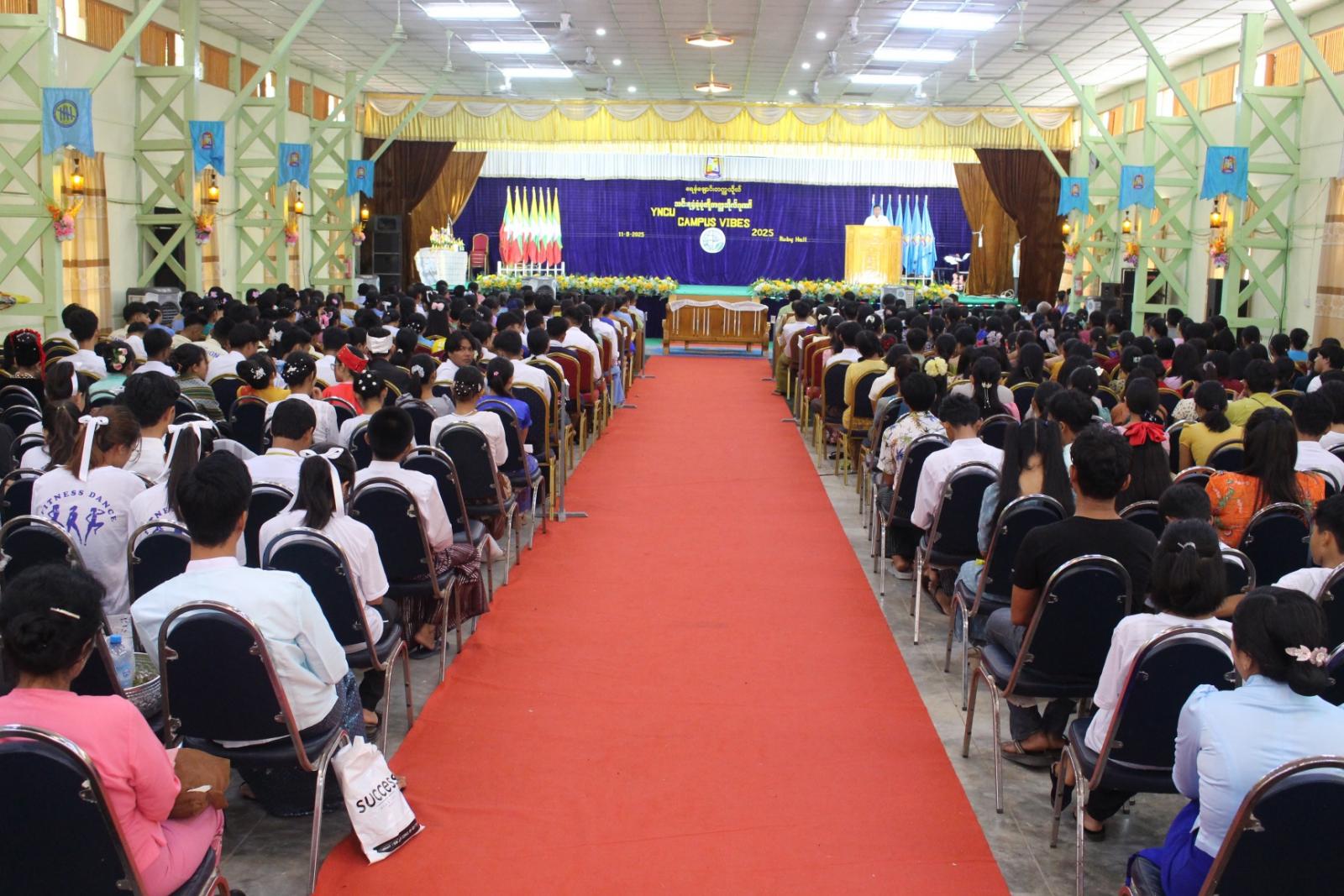 မကွေးတိုင်းဒေသကြီး ရေနံချောင်းတက္ကသိုလ်၌ “သင်းရနံ့စုံစုံ တို့တက္ကသိုလ်ဂုဏ်”ခေါင်းစဉ်ဖြင့် YNCU Campus Vibes 2025 အခမ်းအနားကို ယမန်နေ့က အဆိုပါတက္ကသိုလ် ပတ္တမြားခန်းမ၌ ကျင်းပရာ မကွေးတိုင်းဒေသကြီးအစိုးရအဖွဲ့ဝန်ကြီးချုပ် ဦးတင့်လွင်၊ တိုင်းဒေသကြီး အစိုးရအဖွဲ့ဝင် ဝန်ကြီးများနှင့် တိုင်း၊ ခရိုင်၊ မြို့နယ်အဆင့် တာဝန်ရှိသူများ တက်ရောက်သည်။