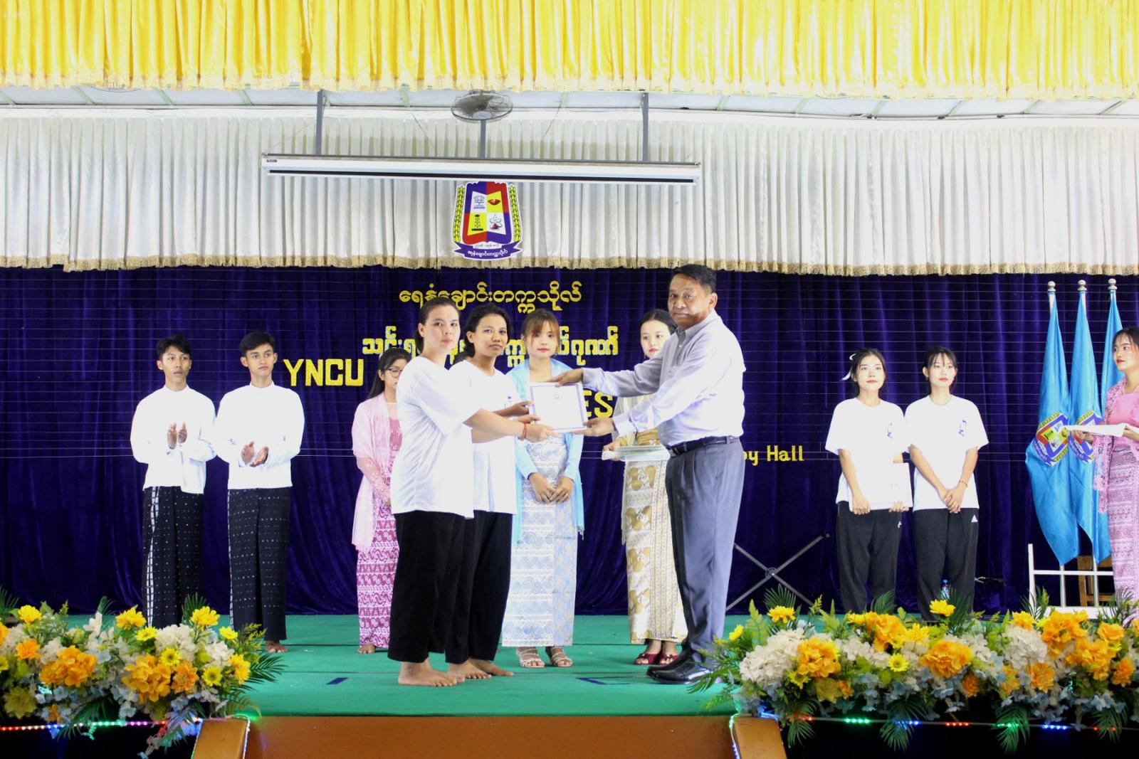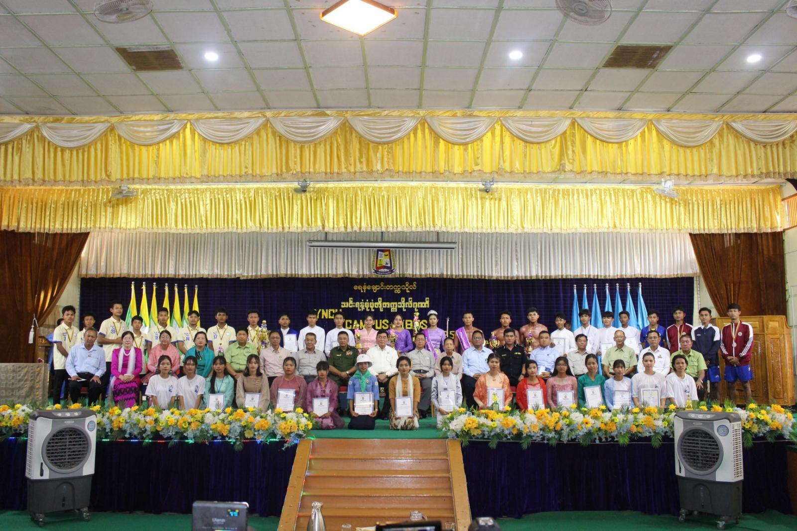 ယင်းနောက် ကျောင်းသားကျောင်းသူများ ဗလငါးတန်ဖွံ့ဖြိုးစေရန်ရည်ရွယ်၍ ၂၀၂၅ ခုနှစ်အတွင်း ကျင်းပခဲ့သည့် စာပေ၊ အနုပညာ၊ အားကစား၊ သုတေသနနှင့်သဘာဝပတ်ဝန်းကျင် ထိန်းသိမ်းကာကွယ်ရေးလုပ်ငန်းများ၊ သင်တန်းများနှင့် နယ်ပယ်ကဏ္ဍအသီးသီးတို့တွင် ထူးချွန်ဆုရရှိသူများကို တိုင်းဒေသကြီးဝန်ကြီးချုပ် ဦးတင့်လွင်နှင့် တာဝန်ရှိသူများက ဂုဏ်ပြုဆုများ အသီးသီးချီးမြှင့်ပေးအပ်ခဲ့ကြောင်း သိရသည်။