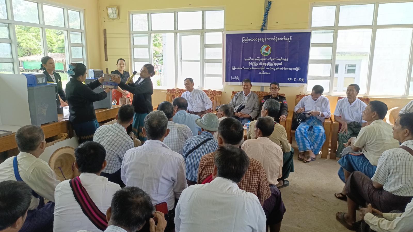 ယင်းနောက် မြို့နယ်ရွေးကောက်ပွဲကော်မရှင်အဖွဲ့ခွဲရုံး၊ ဒုတိယဦးစီးမှူး ဒေါ်ဟန်သင်းလှိုင်မှ မြန်မာအီလက်ထရောနစ် မဲပေးစက်(MEVM) မဲပေးစက် ဖွဲ့စည်းတည်ဆောက်ပုံ၊လက်တွေ့ စမ်းသပ်မဲပေးခြင်းလုပ်ငန်းစဉ်များအား ရှင်းလင်းတင်ပြပြီး မြန်မာအီလက်ထရောနစ် မဲပေးစက် (MEVM) မဲပေးစက်ဖြင့် ကိုယ်တိုင်လက်တွေ့ မဲပေးကြသည်။ ထို့နောက်တက်ရောက်လာသူများမှ သိရှိလိုသည်များ မေးမြန်းတင်ပြကာအခမ်းအနား ရုပ်သိမ်းခဲ့ကြောင်း သိရသည်။