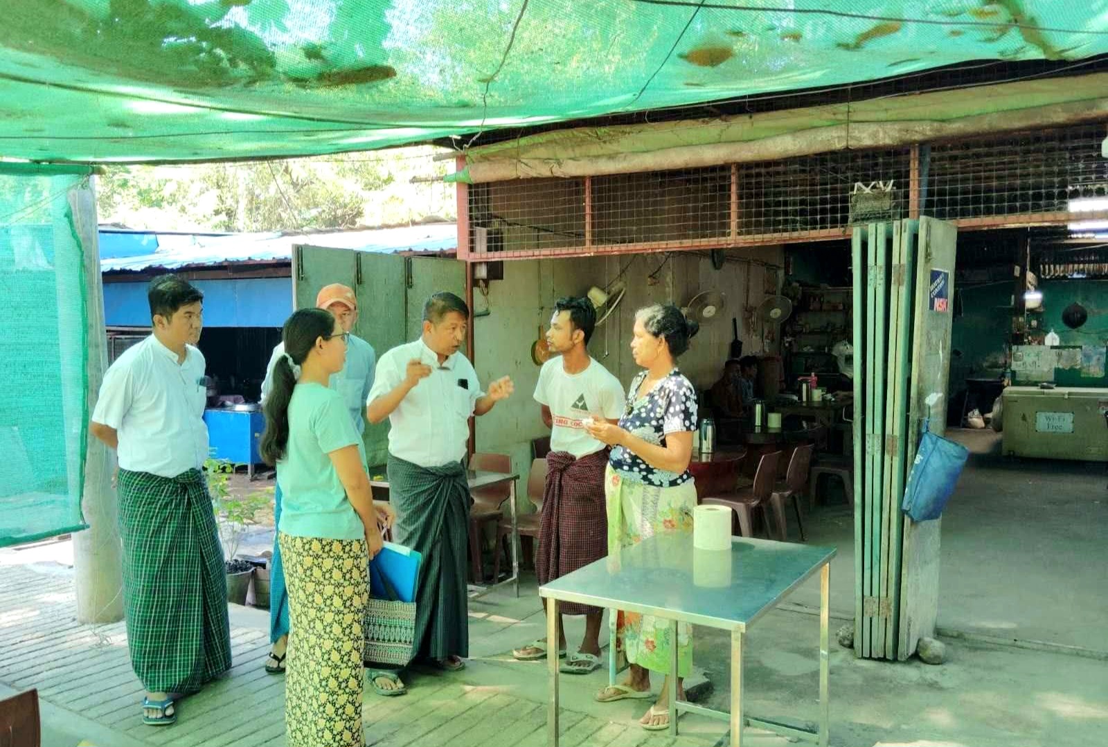 ထို့နောက် မြို့နယ်စည်ပင်သာယာရေးအဖွဲ့ အမှုဆောင်အရာရှိနှင့် ဝန်ထမ်းများ ပူးပေါင်းအဖွဲ့က မြို့ပတ်လမ်းနှင့် မြို့တွင်းမိန်းလမ်းမကြီးတစ်လျှောက်တွင် ဖွင့်လှစ်ရောင်းချနေသော ဈေးဆိုင်ခန်းများအား သန့်ရှင်းသပ်ရပ်မှု ရှိ/မရှိ၊ မီးဘေးအန္တရာယ်လုံခြုံစိတ်ချရမှု ရှိ/မရှိနှင့် ဈေးဆိုင်ခန်းများ လမ်းနယ်နိမိတ်နေရာကျူးကျော်၍ ဈေးရောင်းချခြင်း ရှိ/မရှိတို့ကို လိုက်လံကြည့်ရှုစစ်ဆေးခဲ့ကြောင်း သိရသည်။