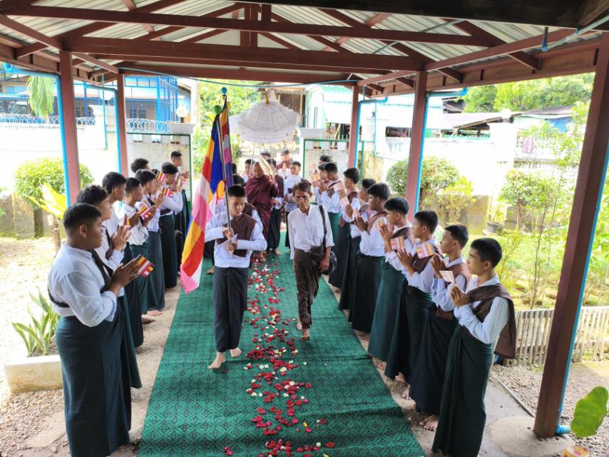 ဦးစွာ အခမ်းအနားကိုနမောတသ သုံးကြိမ်ရွတ်ဆိုဘုရားကန် တော့၍ဖွင့်လှစ်ပေးပြီး၊ မွန်ပြည်နယ် မော်လမြိုင်မဟာမြိုင်ပရိယတ္တိ စာသင်တိုက်မှ ပ သုံးလုံး ပြည်တွင်းပြည်ပ သာသနာပြု(၁၅)ဘွဲ့ရ ဘဒ္ဒန္တဝိမလာဘိဝံသ(ဟိတဓရ)ဆရာတော်ထံမှ ငါးပါးသီလခံယူ၍ သြကာသကန်တော့ချိုးဖြင့်ပူဇော်ကန်တော့ပြီး၊ ဆရာတော်မှ ကျောင်းသားကျောင်းသူများအား (၃၈)ဖြာမင်္ဂလာတရားတော်နှင့်အညီ လိမ္မာယဥ်ကျေး တရားဒေသနာ ကလေးအထူးတရာပွဲပြုလုပ်ပေးပြီး၊ လှူဒါန်းမှုအစုစုတို့အတွက် ဆရာတော်ဘုရားထံမှ ရေစက်သွန်းချအမျှပေးဝေပြီး အခမ်းအနားကို ဗုဒ္ဓသာသနံ စိရံတိဌတု သုံးကြိမ်ရွတ်ဆို ဘုရားကန်တော့၍ အခမ်းအနားရုပ်သိမ်းကြောင်း သိရသည်။