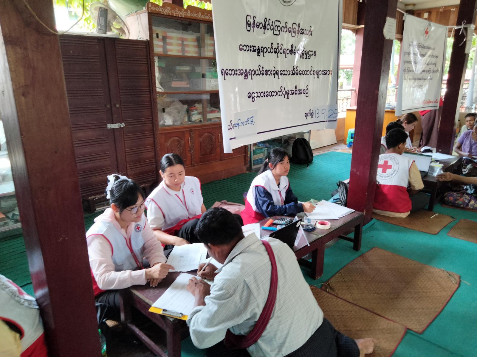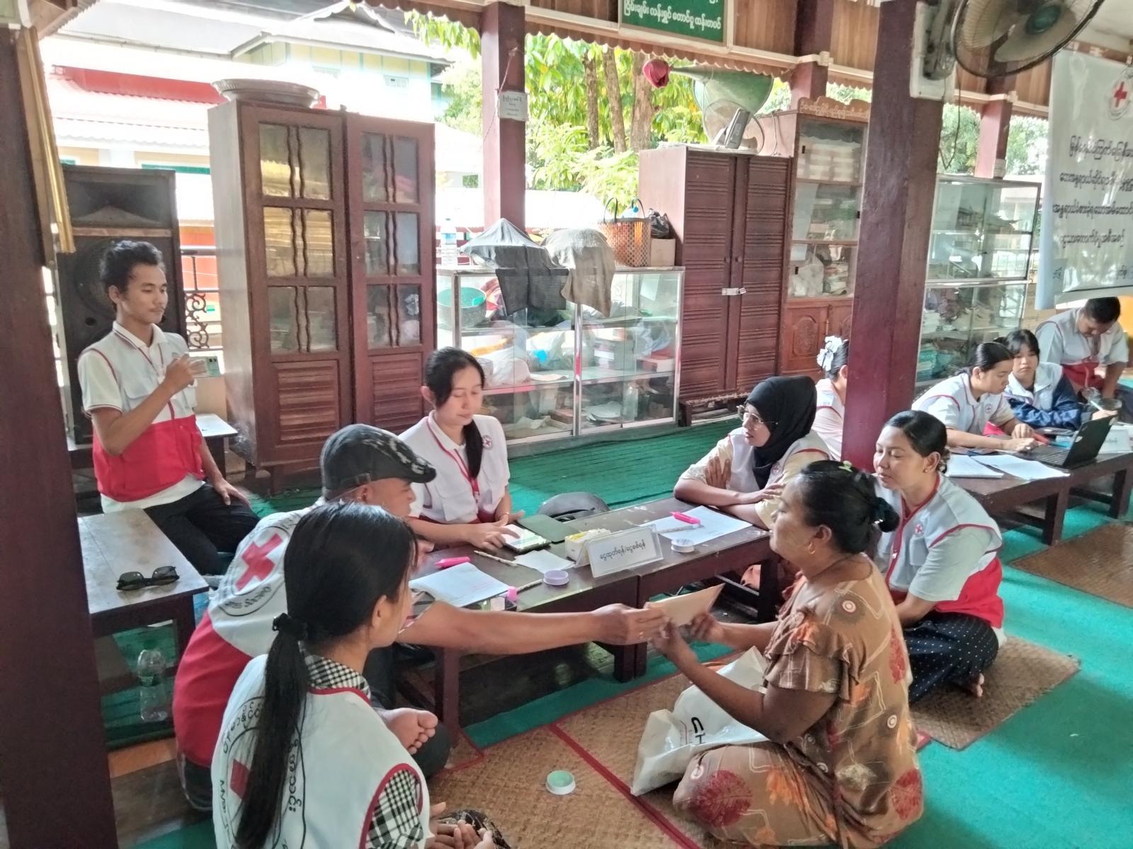 ပဲခူးတိုင်းဒေသကြီး တောင်ငူခရိုင် ထန်းတပင်မြို့နယ်၌ ရေဘေးသင့် အိမ်ထောင်စု (၅၅၉) စုအတွက် အပြည်ပြည် ဆိုင်ရာ ကြက်ခြေနီ၊ လခြမ်းနီအသင်းနှင့်မြန်မာနိုင်ငံ ကြက်ခြေနီအသင်းတို့မှ သဘာဝဘေးရန်ပုံငွေဖြင့် ၂၀၂၄ ခုနှစ် ရာဂီရေဘေးအတွက် ထောက်ပံ့ငွေပေးအပ်ခြင်းကို စက်တင်ဘာ ၁၃ ရက်နေ့ နံနက် ၉ နာရီက သီရိရတနာရပ်ကွက် မဟာဝိသုတရာမ ဘုန်းတော်ကြီးကျောင်းတွင် မြန်မာနိုင်ငံကြက်ခြေနီအသင်းနှင့် မြို့နယ်ကြက်ခြေနီအသင်းခွဲတို့ ပူးပေါင်း၍ တဆင့် လှူဒါန်းပေးခဲ့သည်။