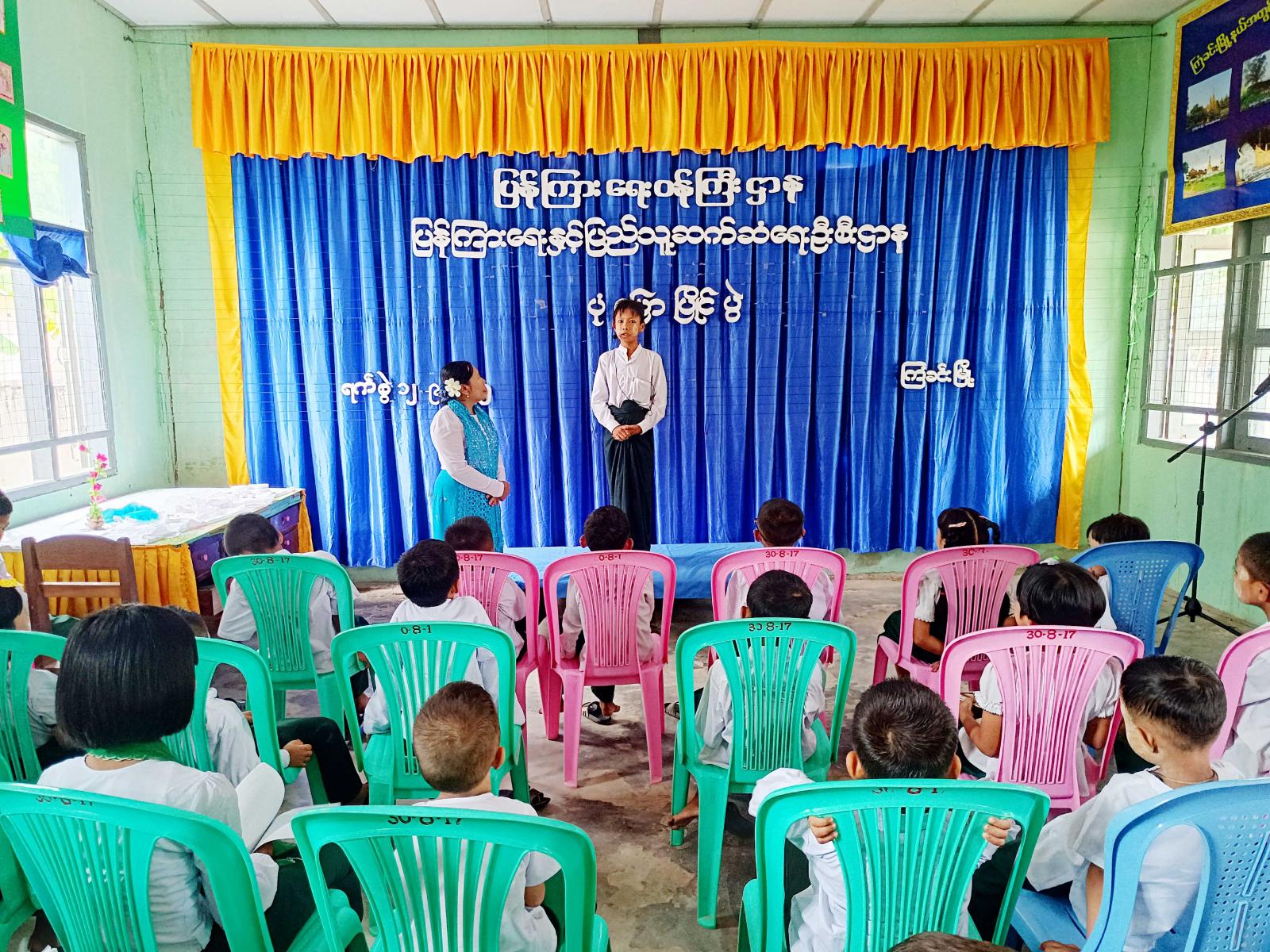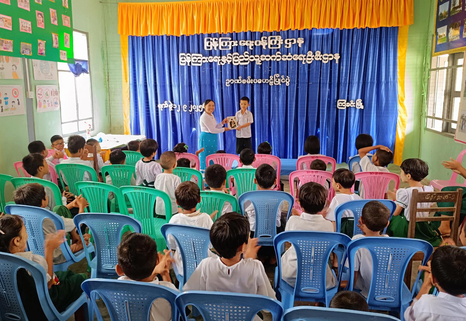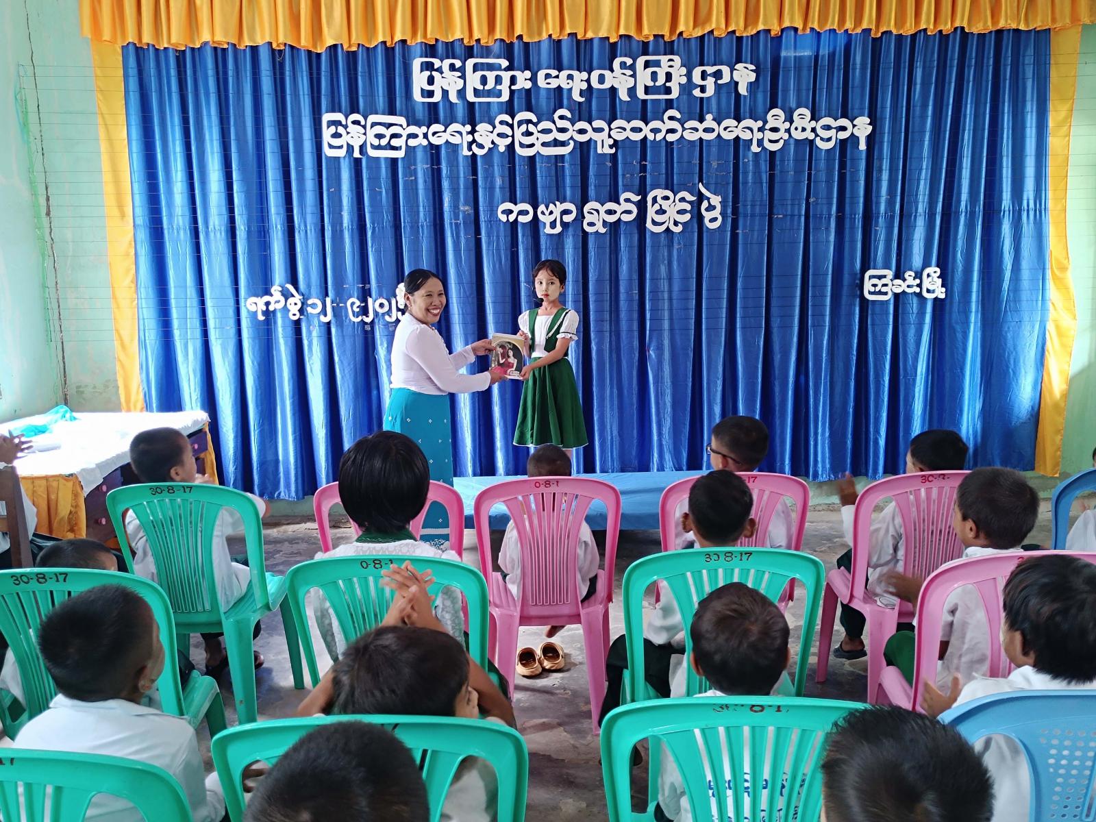 ထို့နောက် ကဗျာရွတ်ပြိုင်ပွဲ၊ ပုံပြောပြိုင်ပွဲ၊ ဉာဏ်စမ်းပဟေဠိပြိုင်ပွဲများကို ကျင်းပပေးခဲ့ကြရာ ကျောင်းသား၊ ကျောင်းသူ (၄၀)ဦးက သက်ဆိုင်ရာ ပြိုင်ပွဲခေါင်းစဉ်များအလိုက် ဝင်ရောက်ယှဉ်ပြိုင်ကြပြီး ပြိုင်ပွဲများတွင် ဝင်ရောက်ယှဉ်ပြိုင်ကြသော ကျောင်းသား၊ ကျောင်းသူများအား မြို့နယ်ဦးစီးမှူး ဒေါ်ခင်မိုးမြင့်က အမှတ်တရလက်ဆောင်ပစ္စည်းများ ပေးအပ်ခဲ့ကြသည်။
