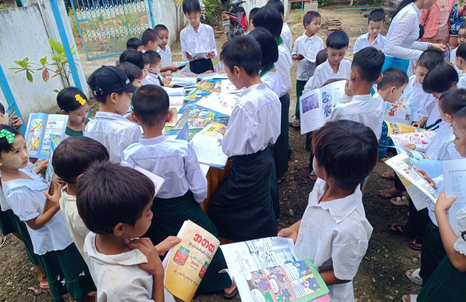 ယင်းနောက် ပြန်ကြားရေးနှင့်ပြည်သူ့ဆက်ဆံရေးဦးစီးဌာနမှ ခင်းကျင်းပြသထားသည့် သုတ၊ ရသစာအုပ်စာစောင်ပြပွဲနှင့် မူးယစ်ဆေးဝါးအသိပညာပေး၊ ကလေးအလုပ်သမားပပျောက်ရေး အသိပညာပေး နံရံကပ်စာစောင်တို့ကို ကျောင်းသား၊ ကျောင်းသူများက စိတ်ပါဝင်းစားစွာဖြင့် လေ့လာကြည့်ရှုခဲ့ကြကြောင်း သိရသည်။