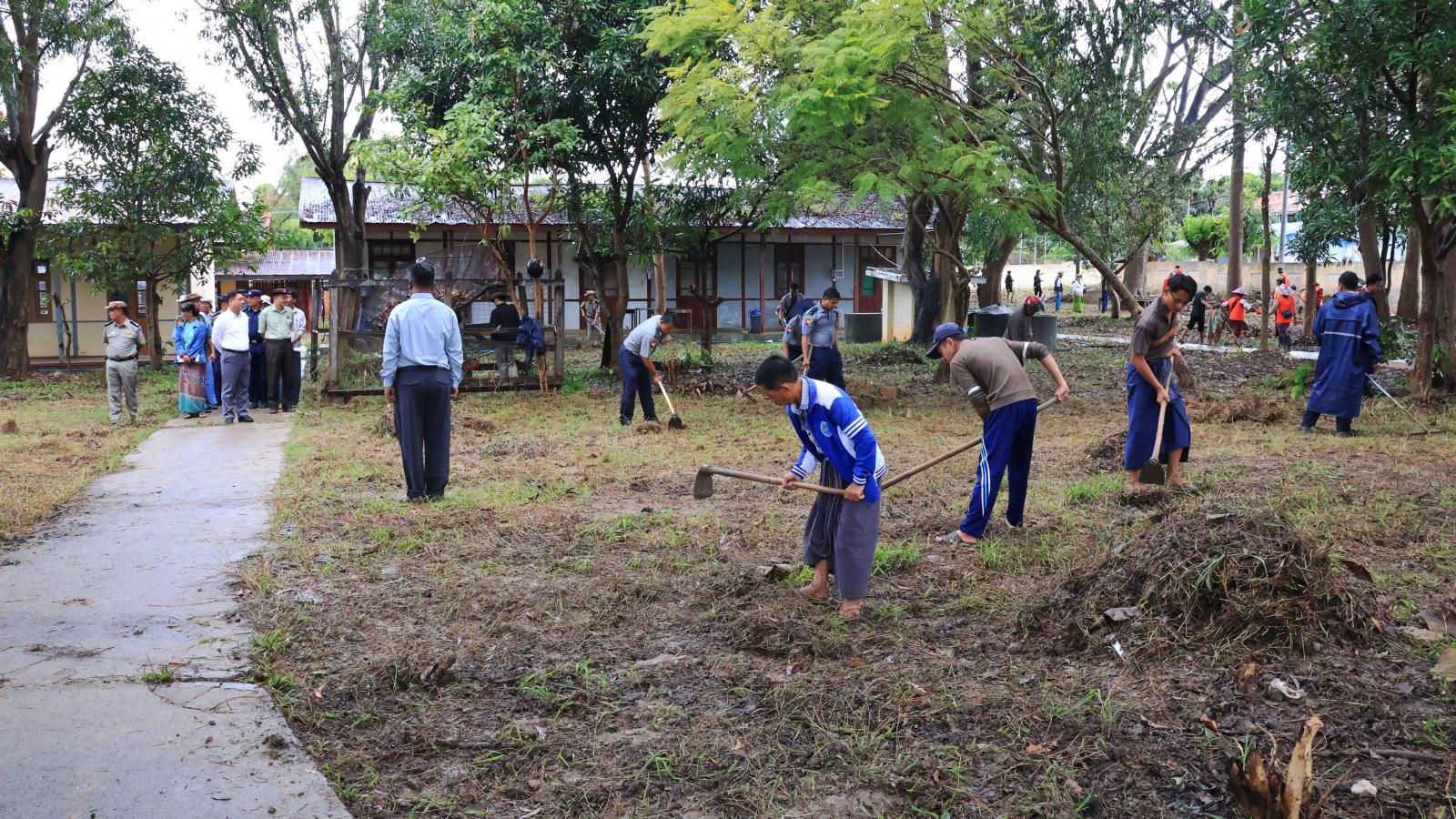 ဆက်လက်၍ မိုင်းလုံးရပ်ကွက်ရှိ အမှတ်(၄) အခြေခံပညာအထက်တန်းကျောင်းသို့ ရောက်ရှိကာ ရုံးခန်းများ၊ စာသင်ဆောင်များ ပြင်ဆင်ဆောင်ရွက်နေသည့် အခြေအနေများအား ကြည့်ရှုစစ်ဆေးရာ ပြည်နယ်ပညာရေးမှူး၊ ကျောင်းအုပ်ကြီးနှင့်တာဝန်ရှိသူများက ရှင်းလင်းတင်ပြကြသည်။ ပြည်နယ်ဝန်ကြီးချုပ်က ကျောင်းအမြန်ဆုံးဖွင့်လှစ်နိုင်ရေးလုပ်ငန်းများကို သတ်မှတ်ကာလအတွင်း အချိန်မီပြီးစီးအောင်ဆောင်ရွက်ရန်၊ ကျောင်းသား၊ ကျောင်းသူများ စိတ်အေးချမ်းသာစွာ ပညာ သင်ကြားနိုင်ရေး စာသင်ဆောင်များအား စနစ်တကျပြင်ဆင်ထားရှိရန်၊ စာသင်ဆောင်များ၊ သန့်စင်ခန်းများအတွင်း အနံ့သက်ကောင်းမွန်စေရေး ဆေးဖြန်းခြင်းလုပ်ငန်းများ ဆောင်ရွက်ပေးရန်၊ ကျောင်းအတွင်း အနိမ့်ပိုင်းနေရာများ၌ ရေဝပ်မှုမရှိစေရေး စနစ်တကျ ဆောင်ရွက်ပေးရန်နှင့် ကျောင်းပတ်ဝန်းကျင် သန့်ရှင်းသာယာလှပရေးကို စဉ်ဆက်မပြတ် ဆောင်ရွက်သွားရန် မှာကြားခဲ့ပြီး လိုအပ်သည်များကို တာဝန်ရှိများနှင့် ပေါင်းစပ်ညှိနှိုင်းပေးခဲ့သည်။