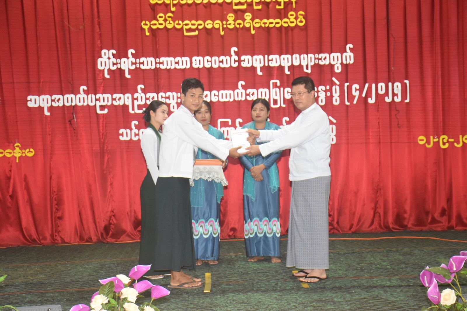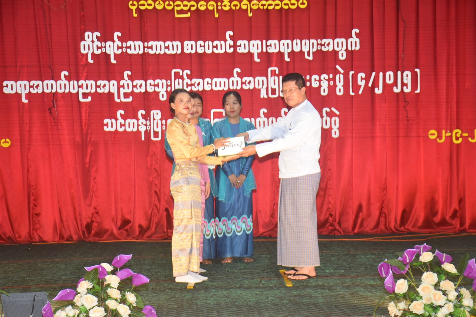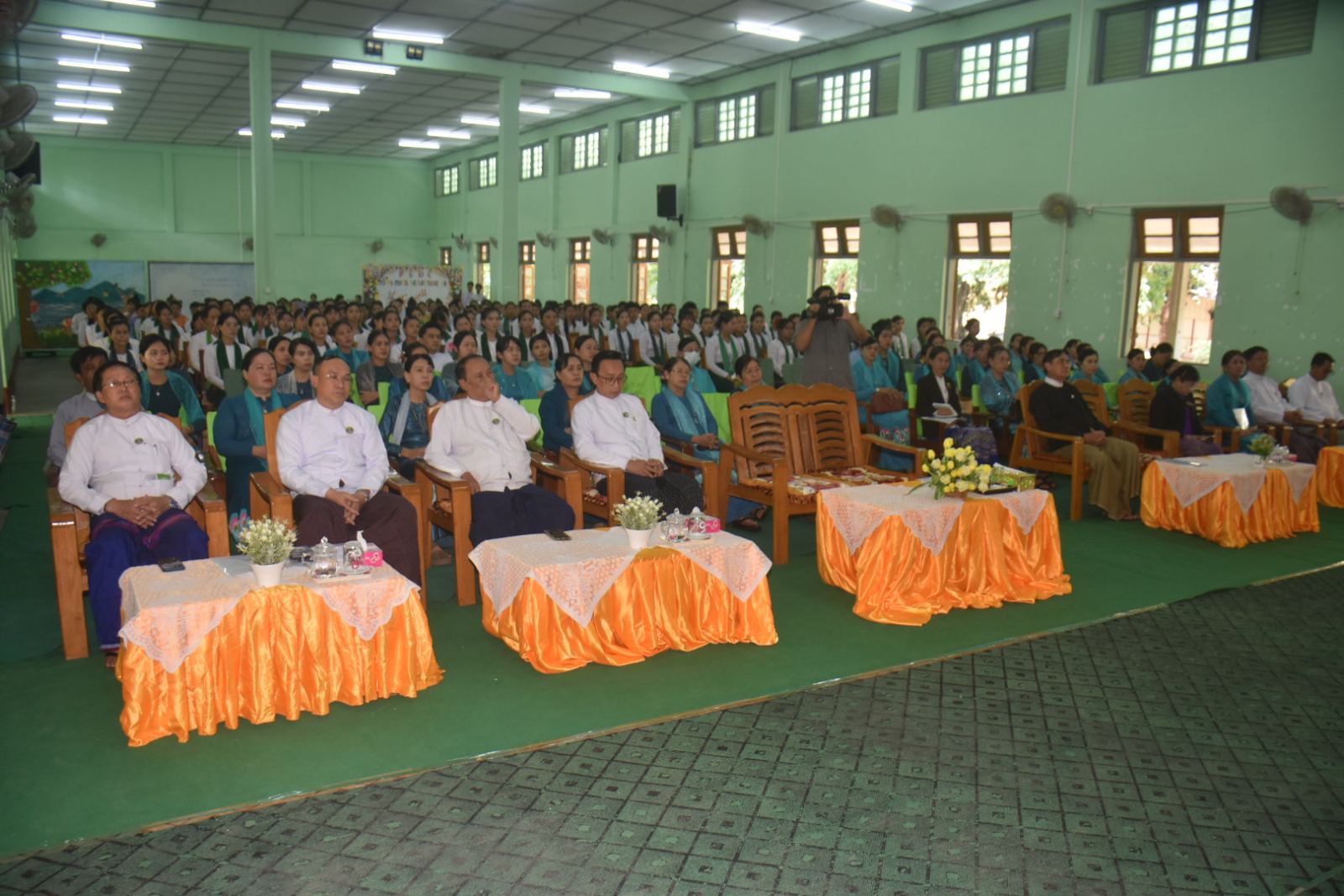 ဦးစွာ အခမ်းအနားကို ကျောင်းသား၊ ကျောင်းသူများက “ကြိုဆိုလက်ကမ်း ကံ့ကော်တန်း” သီချင်းဖြင့် သီဆိုဖွင့်လှစ်ခဲ့ပြီးနောက် တိုင်းဒေသကြီးဝန်ကြီးချုပ်က“ တိုင်းရင်းသားဘာသာစာပေသင် ဆရာ၊ ဆရာမများအတွက် ဆရာအတတ်ပညာ အရည်အသွေးမြှင့် အထောက်အကူပြုဆွေးနွေးပွဲသည် ရက်တိုတောင်းသော်လည်း အကျိုးရှိသည့်ဆွေးနွေးပွဲဖြစ်ပါကြောင်း၊ တိုင်းဒေသကြီးသည် ကျောင်းဖွင့်လှစ်မှုအများဆုံး တိုင်းဒေသကြီးဖြစ်ပြီး အခြေခံပညာကျောင်း (၇)ထောင်ကျော် ဖွင့်လှစ်လျက်ရှိပါကြောင်း၊ ယခုကဲ့သို့ တိုင်းရင်းသားဘာသာစာပေသင် ဆရာ၊ ဆရာမများအတွက် ဆရာအတတ်ပညာ အရည်အသွေးမြှင့်အထောက်အကူပြုဆွေးနွေးပွဲကို ပြုလုပ်နိုင်ခဲ့သဖြင့် စာသင်ကြားရာတွင် ပိုမိုထိရောက်မည်ဖြစ်ပြီး ကျောင်းသား၊ ကျောင်းသူများအနေဖြင့်လည်း ပညာရပ်များကို ပိုမိုသိရှိနားလည်မည်ဖြစ်ပါကြောင်း၊ စာပေသင်ကြားရာတွင် ဆရာ၊ ဆရာများ၏ အခန်းကဏ္ဍသည် လွန်စွာအရေးကြီးပါကြောင်းနှင့် ဘာသာရပ်တစ်ခု ကျွမ်းကျင်တတ်မြောက် စေရန် မည်သို့သင်ကြားပေးမည်ဆိုသည့် ဆွေးနွေးချက်များကို လက်တွေ့အသုံးချသင်ကြားပေးခြင်းဖြင့် ထူးချွန်ထက်မြက်သော နိုင်ငံ့သားကောင်းများ မွေးထုတ်ပေးနိုင်မည်ဖြစ်ကြောင်း၊ ဆရာ၊ ဆရာမများသည် တပည့်များ၏ လက်ဦးဆရာ စံနမူနာပြများဖြစ်သဖြင့် ဝတ်စားဆင်ယင်မှု၊ အပြောအဆို၊ အနေအထိုင်မှစ၍ ဂရုပြုရန်လိုပါကြောင်း” အမှာစကားပြောကြားပြီး တိုင်းရင်းသားဘာသာစာပေသင် ဆရာ၊ ဆရာမများအား မြန်မာ၊ အနောက်ပိုးကရင်၊ စကောကရင် စကားပြောစာအုပ်များနှင့် သင်တန်းပြီးမြောက်ကြောင်းလက်မှတ်များပေးအပ်ခဲ့သည်။ ယင်းနောက် တိုင်းဒေသကြီးဝန်ကြီးချုပ်နှင့် ဧည့်သည်တော်များသည် ကျောင်းသား၊ ကျောင်းသူများ၏ ကပြဖျော်ဖြေမှုများကို ကြည့်ရှုအားပေးခဲ့ပြီး ဂုဏ်ပြုချီးမြှင့်ငွေများ ပေးအပ်ခဲ့သည်။