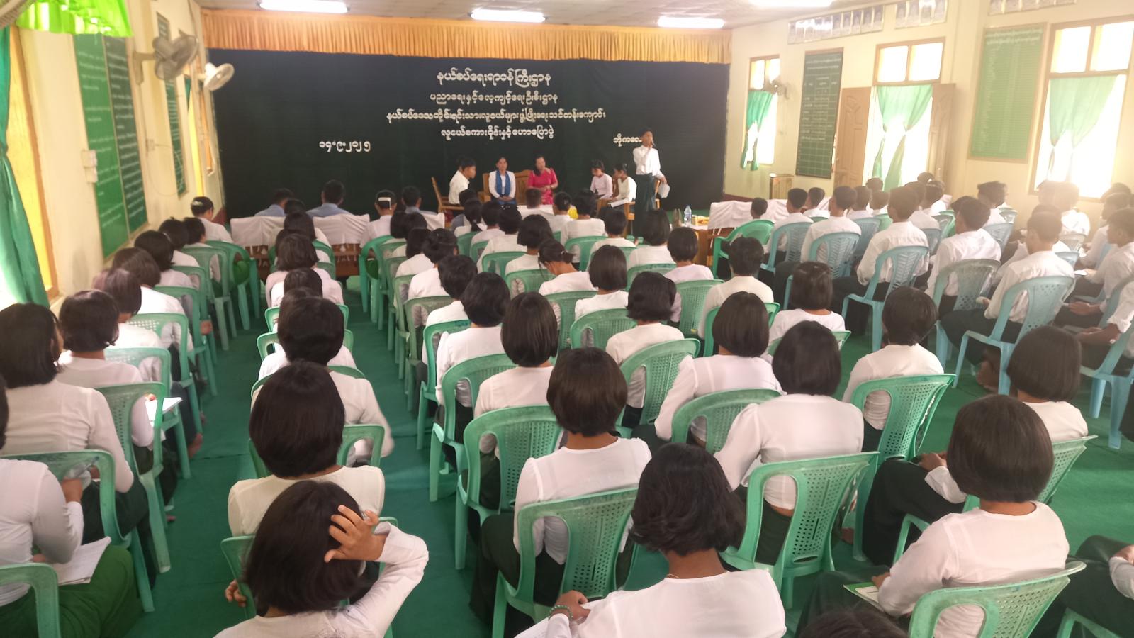 ဧရာဝတီတိုင်းဒေသကြီး၊ ဖျာပုံခရိုင်၊ ဘိုကလေးမြို့နယ်ရှိ နယ်စပ်ဒေသတိုင်းရင်းသား လူငယ်များဖွံ့ဖြိုးရေးသင်တန်းကျောင်းတွင် ယမန်နေ့နံနက်(၉)နာရီအချိန်က လူငယ်စကားဝိုင်းနှင့် ဟောပြောပွဲကျင်းပဆောင်ရွက်ခဲ့ကြောင်း သိရသည်။